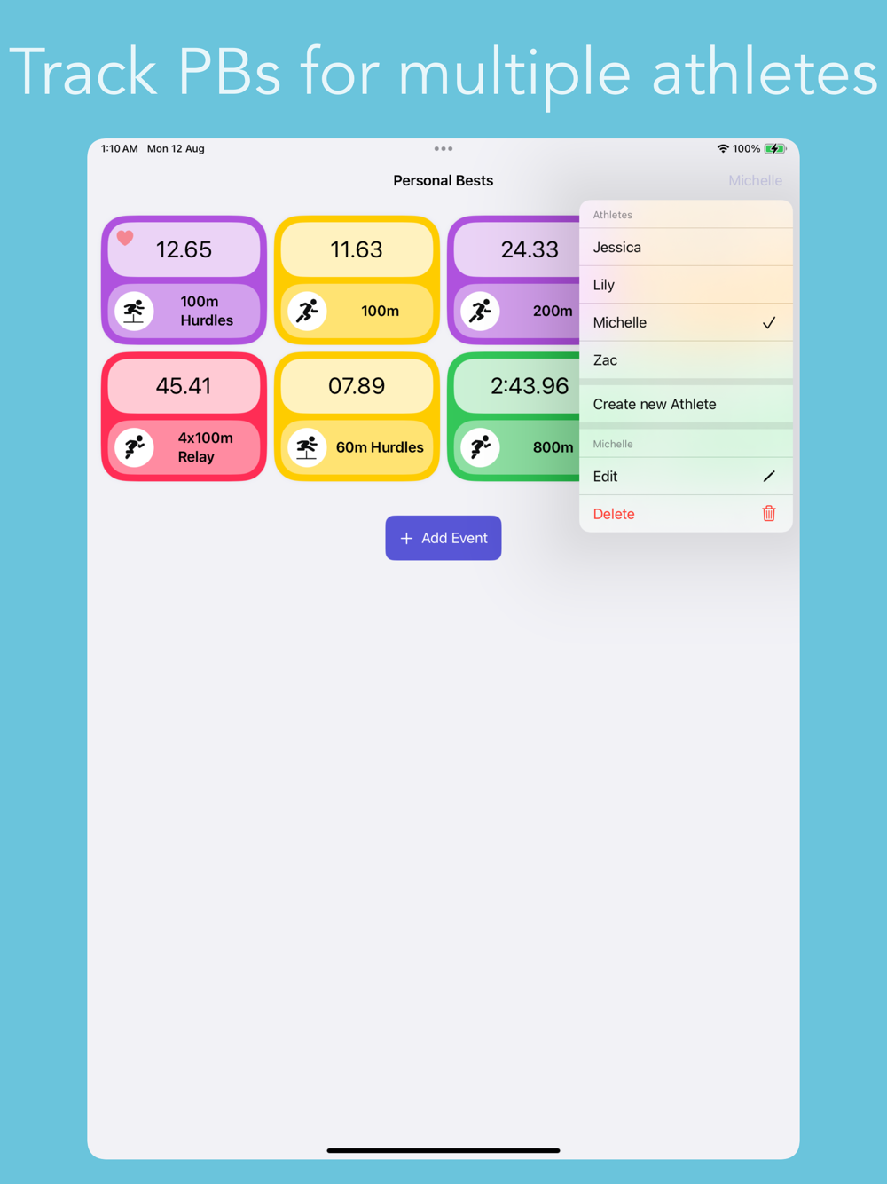 - Manage multiple athlete profiles in one app, perfect for coaches or families