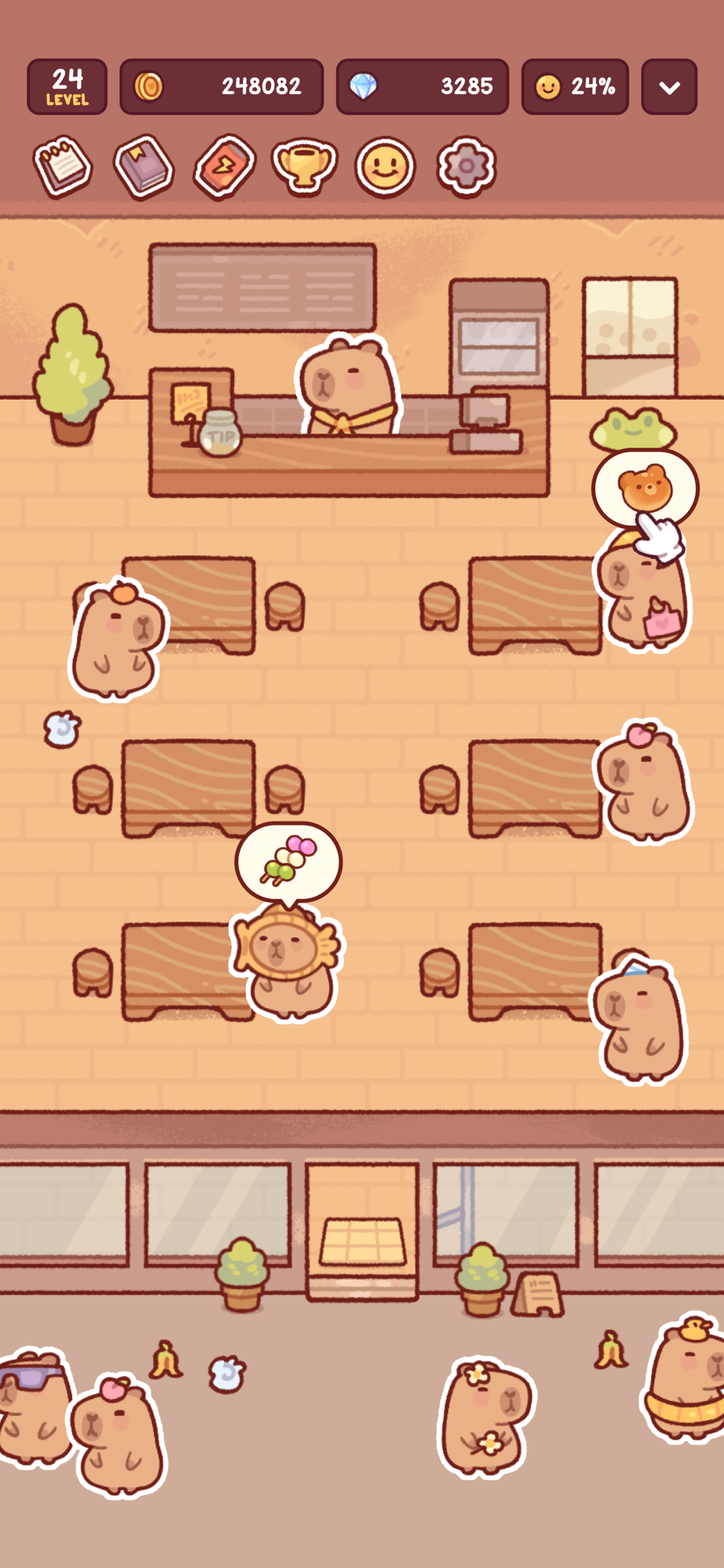 Welcome to Capybara Cafe! After leaving your dull 9-5 corporate grind, you’ve taken a leap to run a cozy cafe in a charming capybara town.