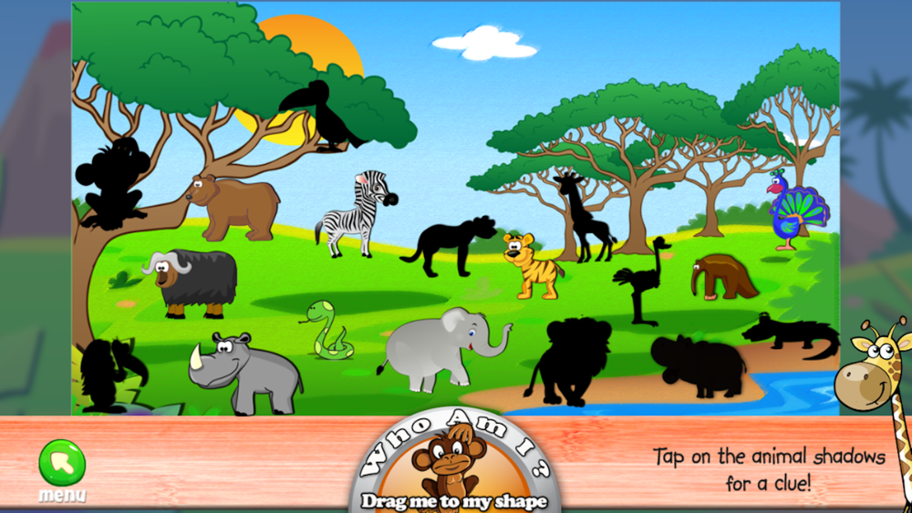 Teaches children to recognise animal shapes, as well as sounds that wild animals make.