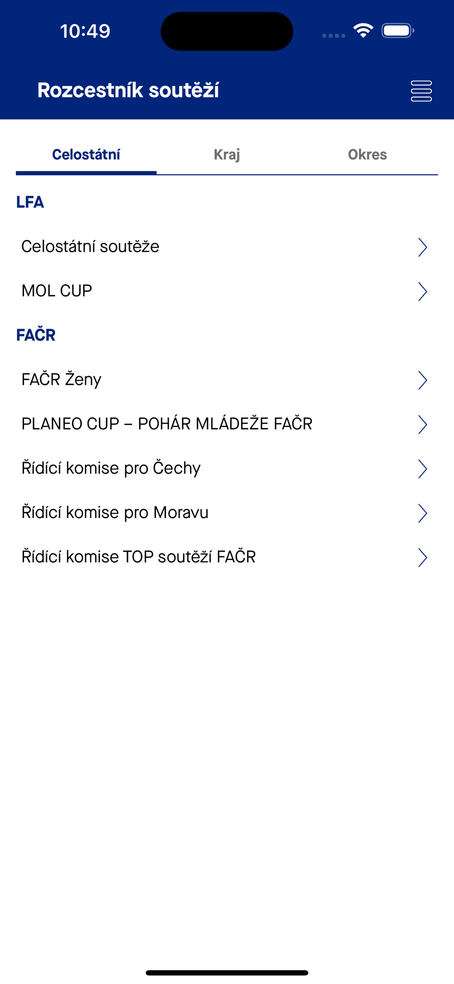 Aplikace poskytuje výsledkový servis Fotbalové asociace ČR napříč všemi fotbalovými soutěžemi, včetně soutěží žen a mládeže ve všech věkových kategoriích.