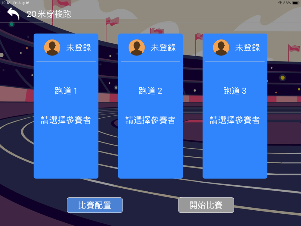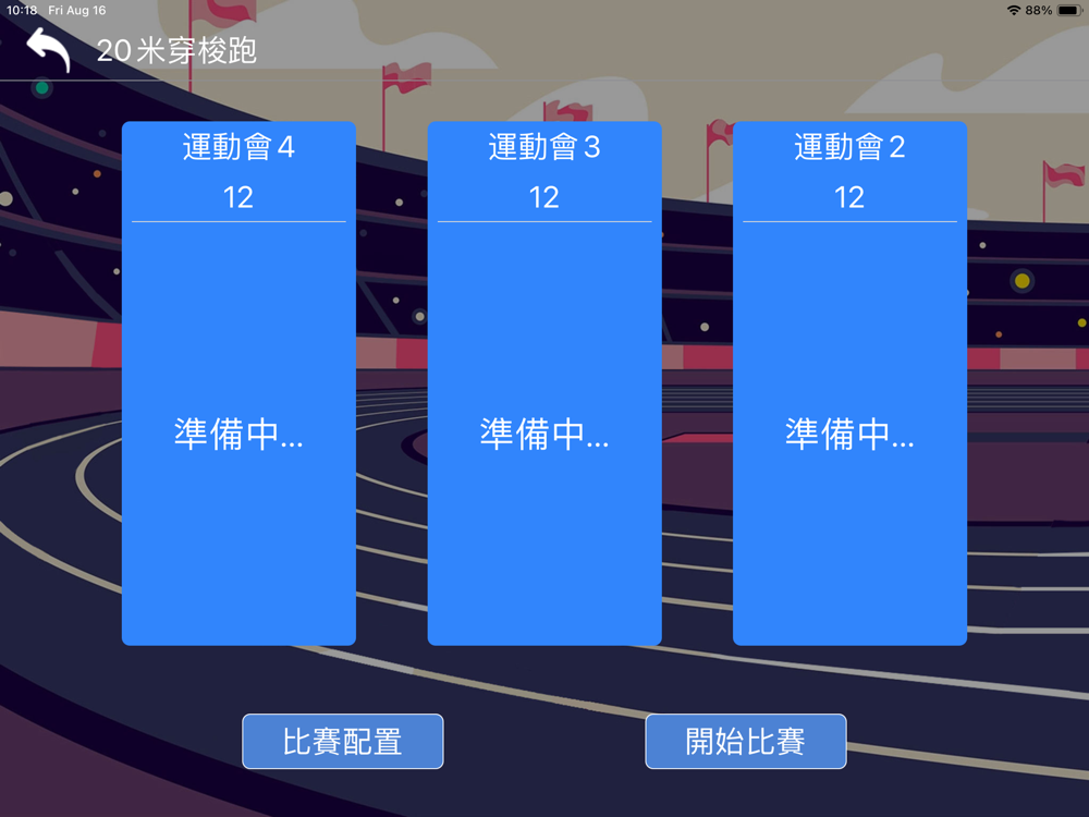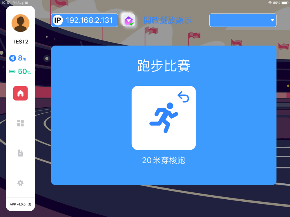 20米穿梭跑是一款中控軟件,結合PC端一起運行,控製PC軟件,可選擇比賽的模式,比賽開始和暫停,及結束等操作,可实时数据查看;