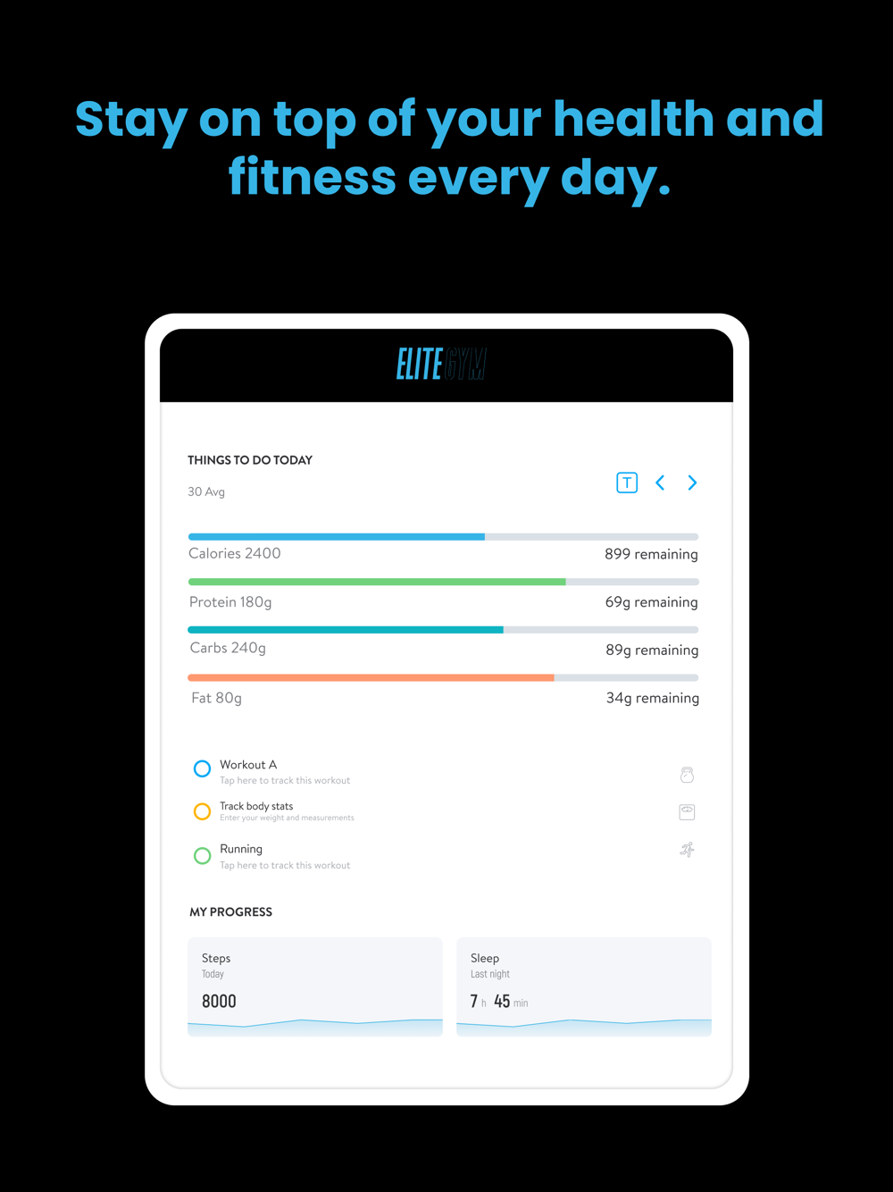 With the ELITE GYM App, you will have access to workout programs designed specifically to help you reach your fitness and health goals! You can follow & track your workouts, your nutrition, your lifestyle habits, measurements and results–all with the help of your coach.