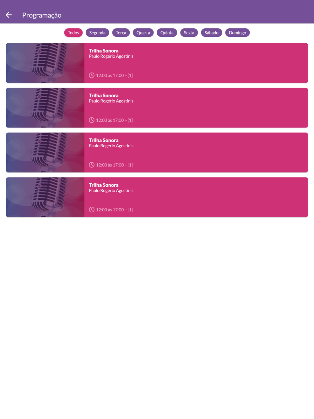 Disponibilizamos para você, além do áudio, informações de contato e programação dos programas.