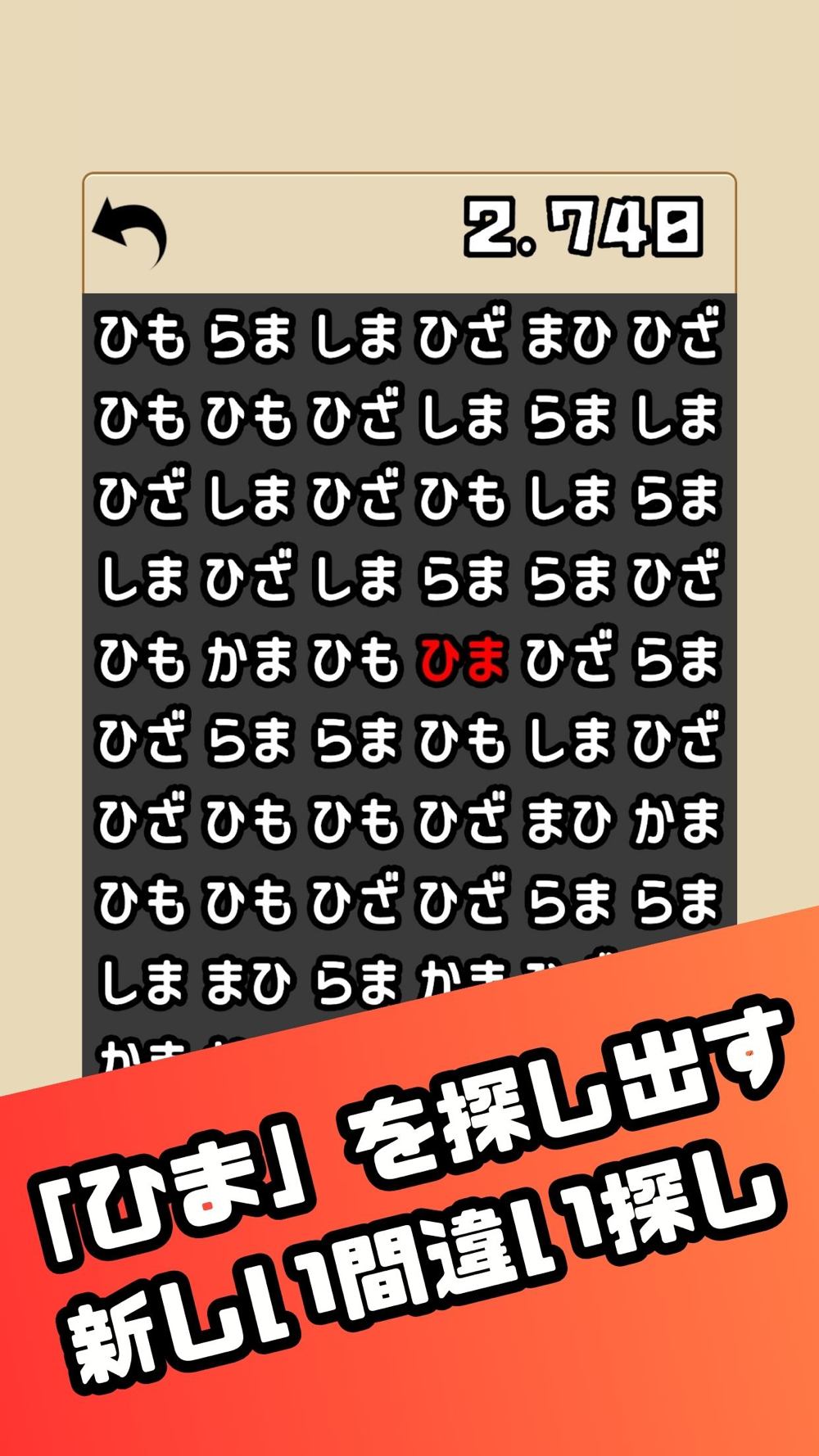 This game offers an exhilarating brain training experience, not just a way to pass the time. Players can exercise their concentration and reflexes by quickly finding and mashing the "Hima" or "Hima" letters out of the 66 letters. A timed competition element is also added, allowing players to keep trying to beat their personal best. In addition, the incorporation of elements of mistake finding and the Aha experience provide additional brain stimulation.