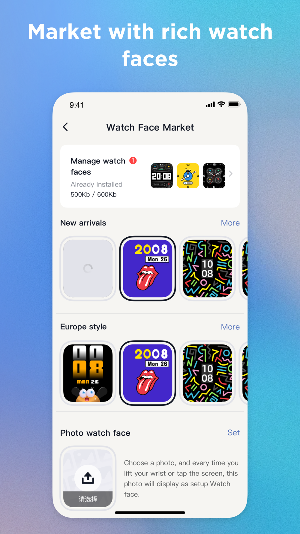 [Change Dial]: A rich selection of watch face themes are available in the brand-new cloud dial market, giving your device a new look every day;