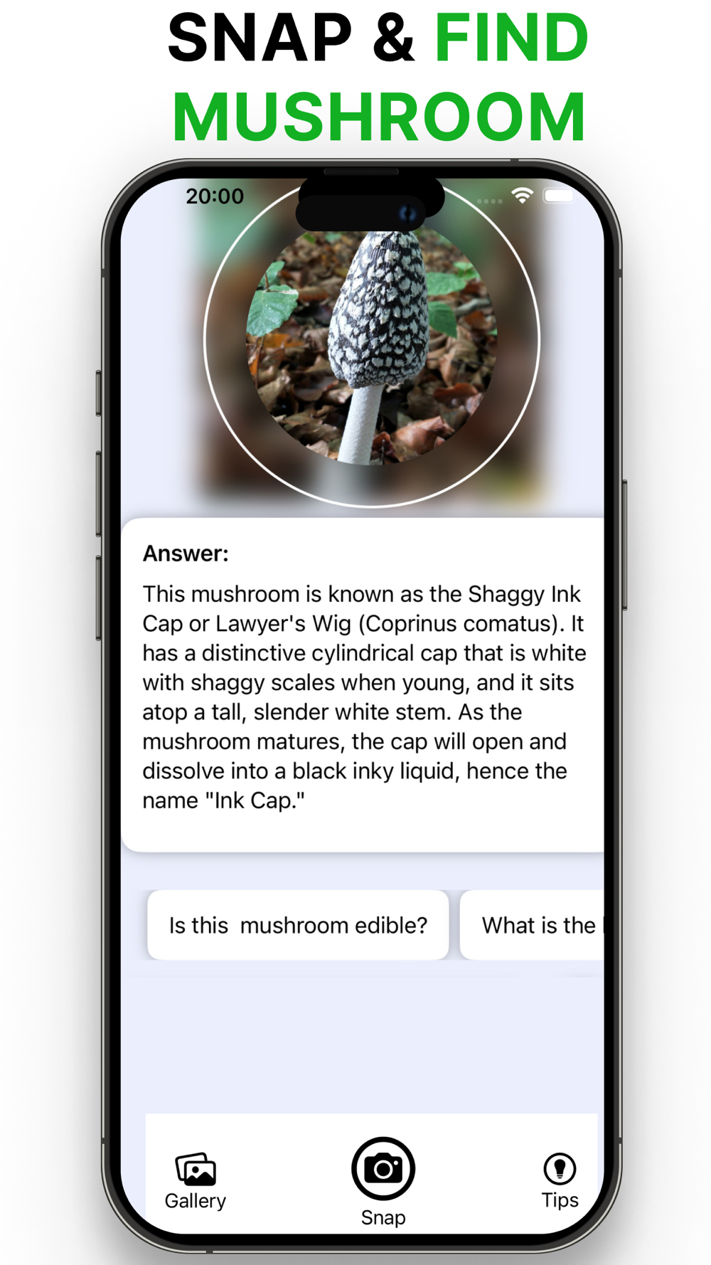 Identify and Explore Mushrooms: Encountered a mysterious mushroom and unsure about its safety? Let Mushroom Identifier clear up the uncertainty! Simply take a photo, and our cutting-edge AI will swiftly analyze it. Enjoy instant, accurate identification and dive into detailed information about each mushroom.