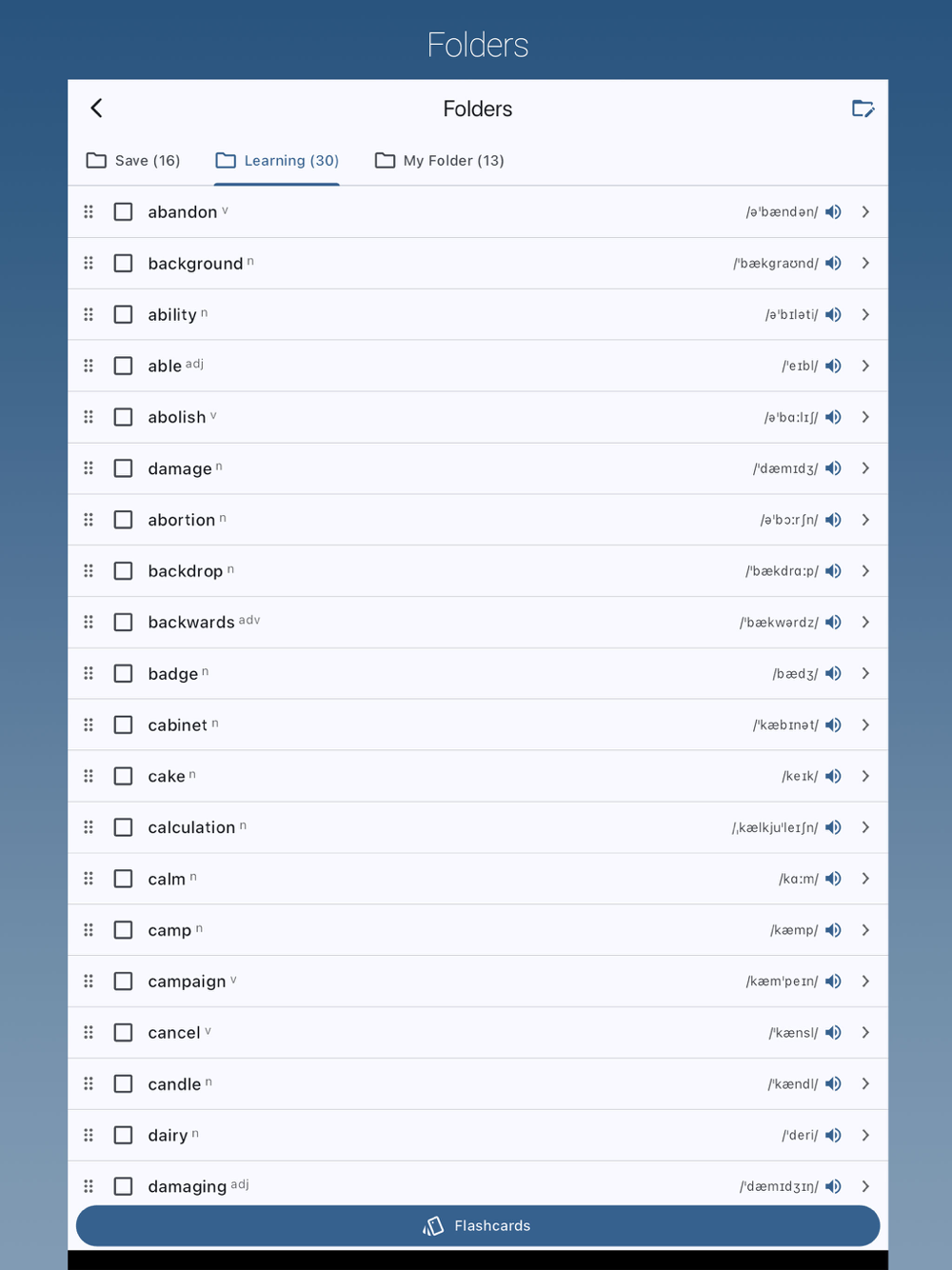 Folders: You can create folders and name them as you like and add the words you want for quick review.