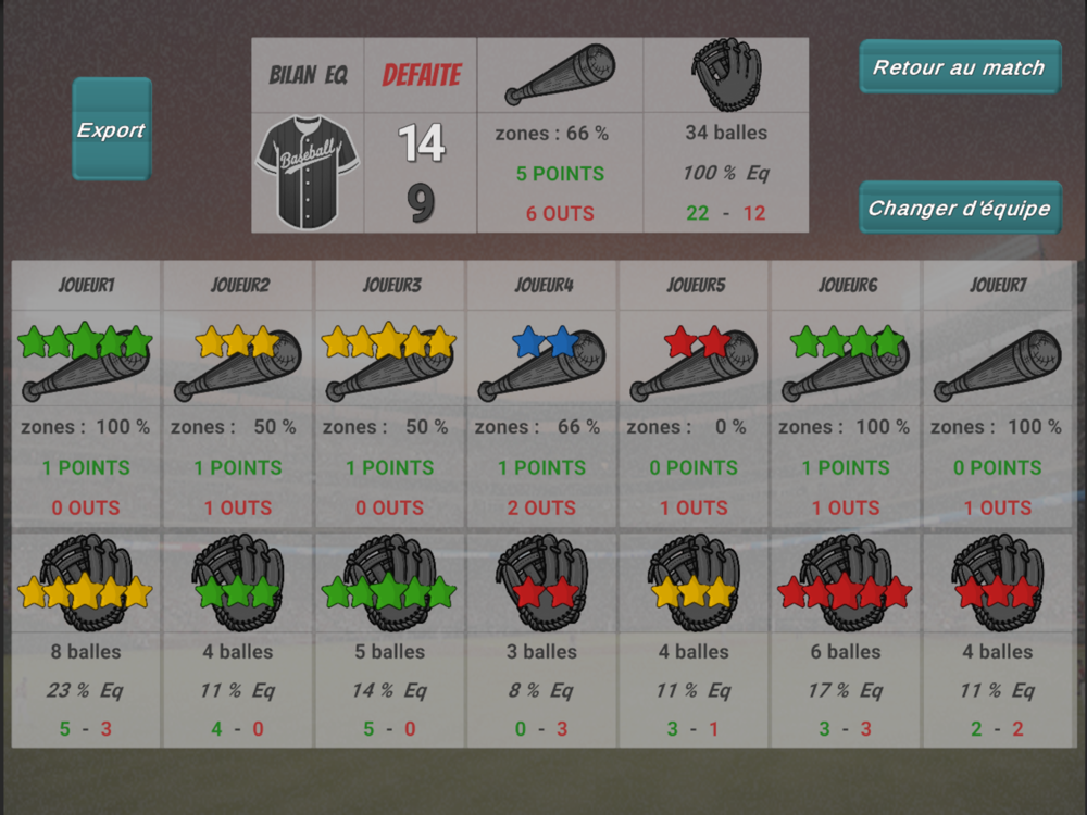 Enfin un bilan permettra de récupérer toutes les données du match.