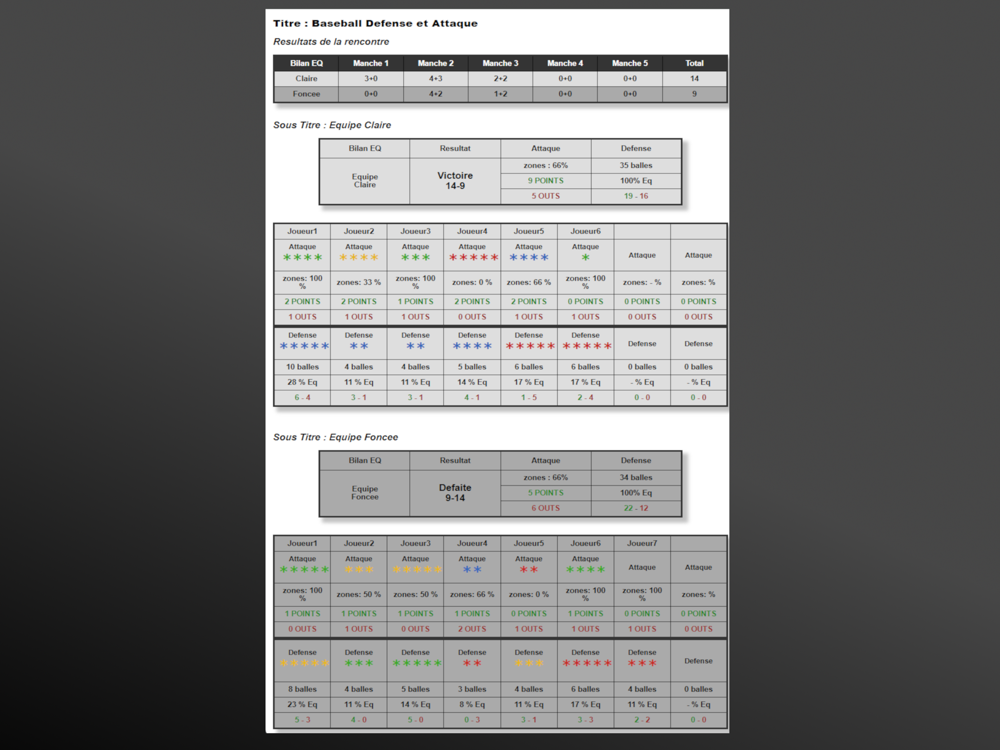 Cette application permet l'observation en Défense comme en Attaque de chaque joueur :