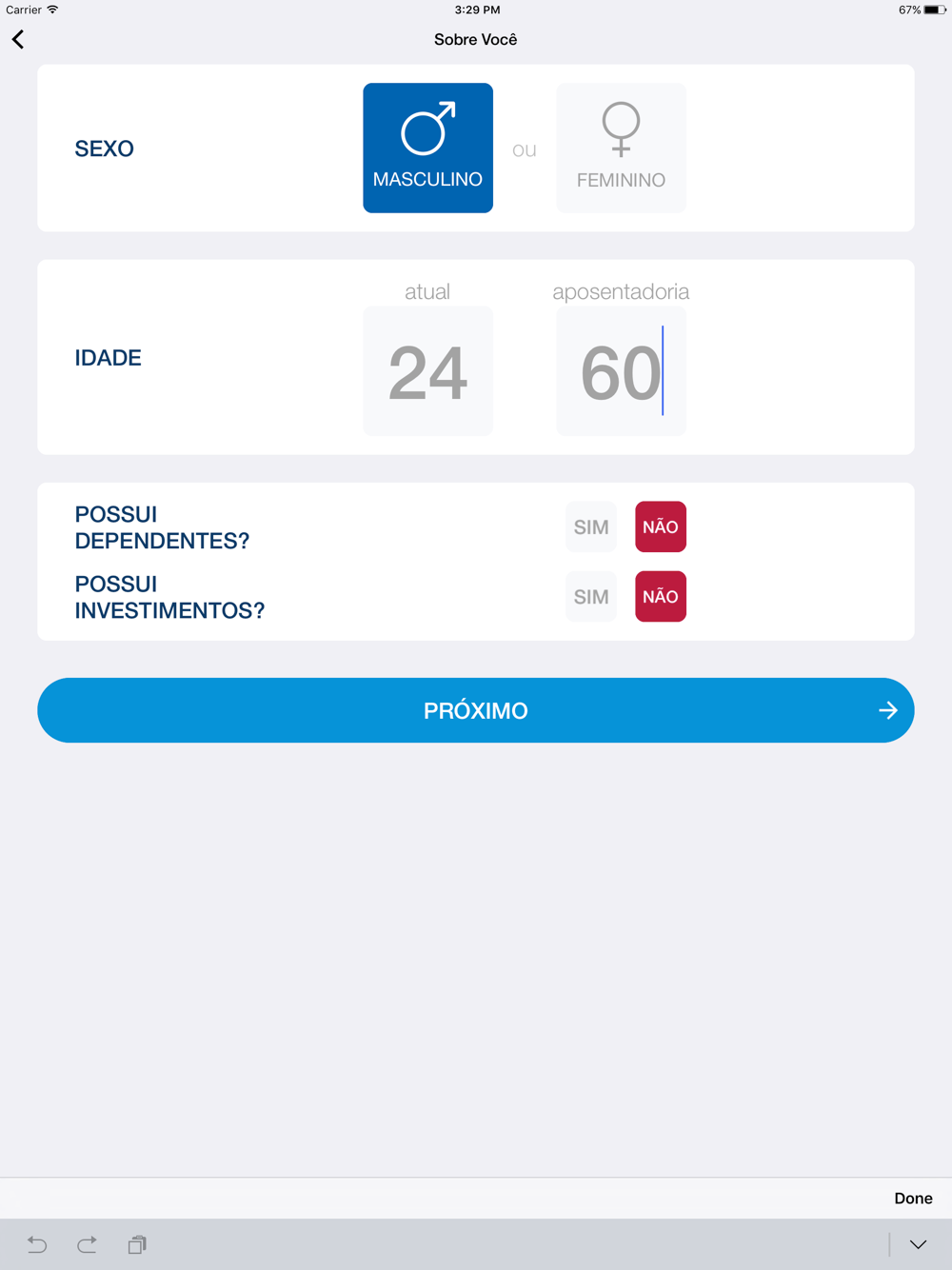 O Target é um simulador que vai ajudar você a saber quanto dinheiro precisa guardar para manter seu padrão de vida na aposentadoria. Basta preencher os campos com os seus dados, e os nossos especialistas farão o resto.