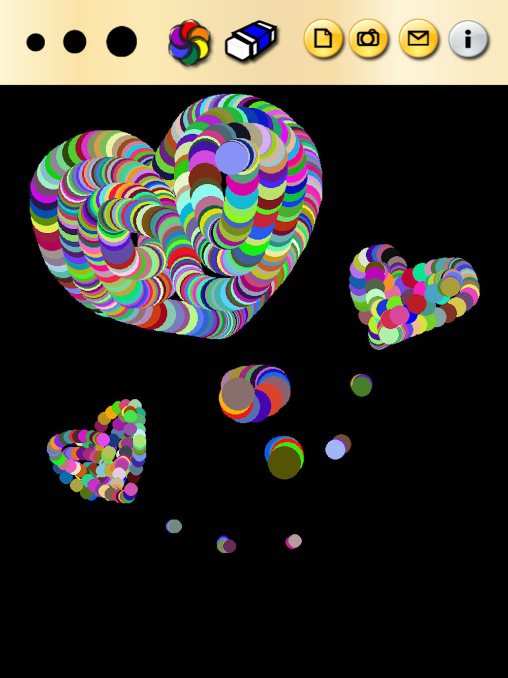 You don't need to select colors and brushes. It has only three line thickness to choose. Of course with an eraser tool to fixed your scribbles, or you can simply clear all by one button. And you can save or mail your paintings if you love them very much and want to share with somebody.