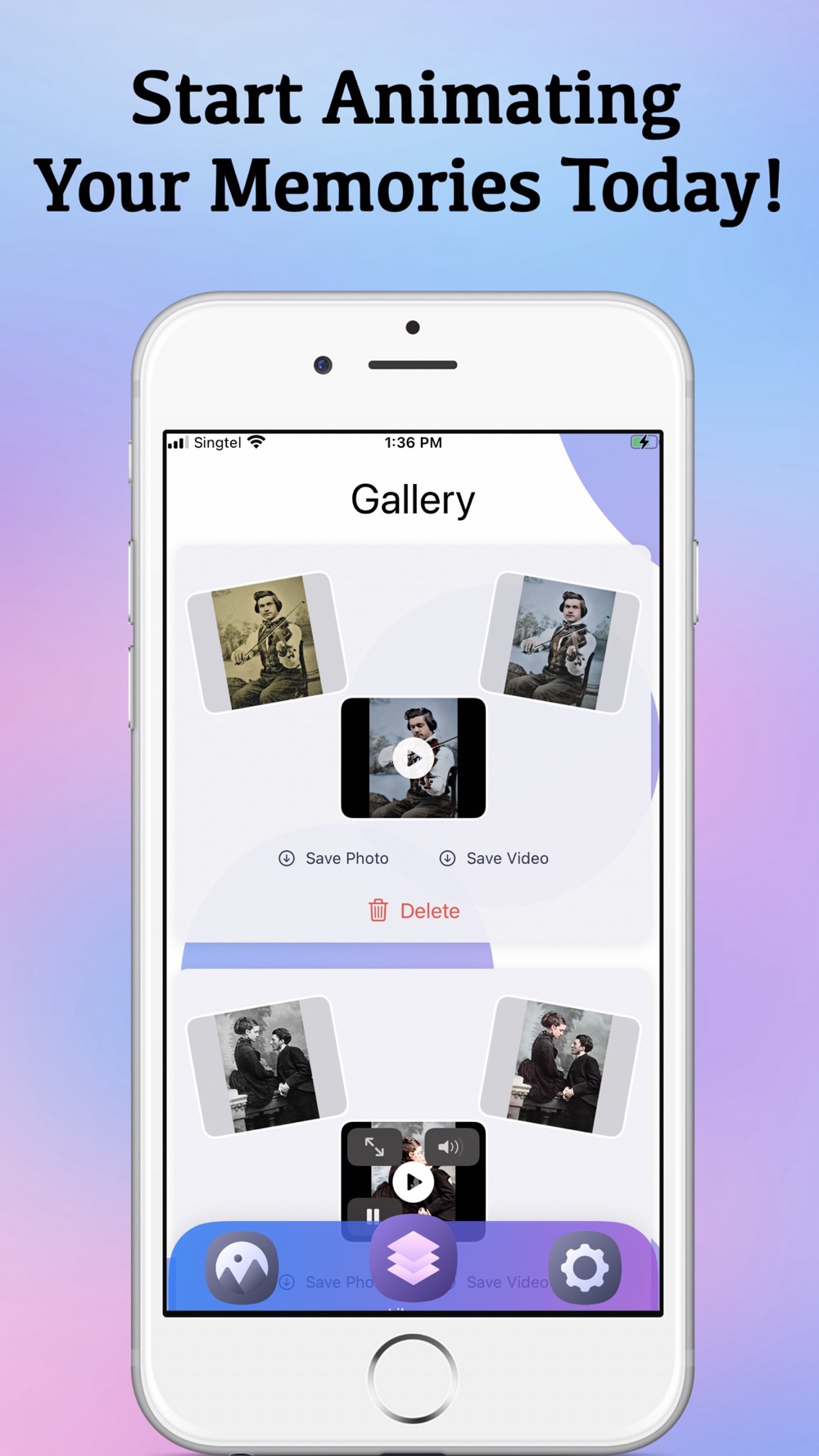 -AI-Powered Photo Animation: Select any old black and white photograph and watch as our advanced AI algorithms colorize and animate it, producing a magical video.