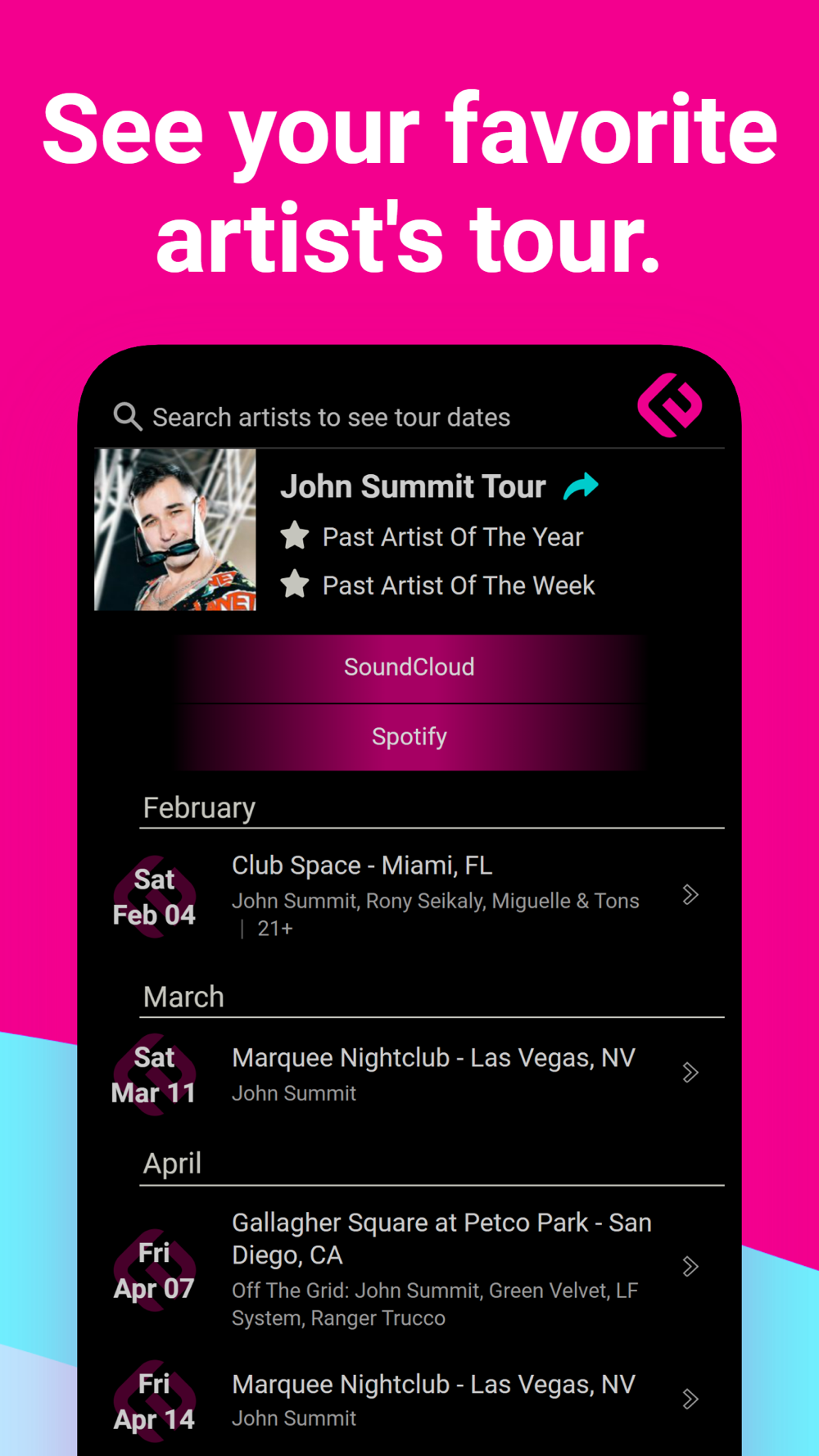 Upcoming EDM concerts near you! See your favorite artists live, and discover new music.