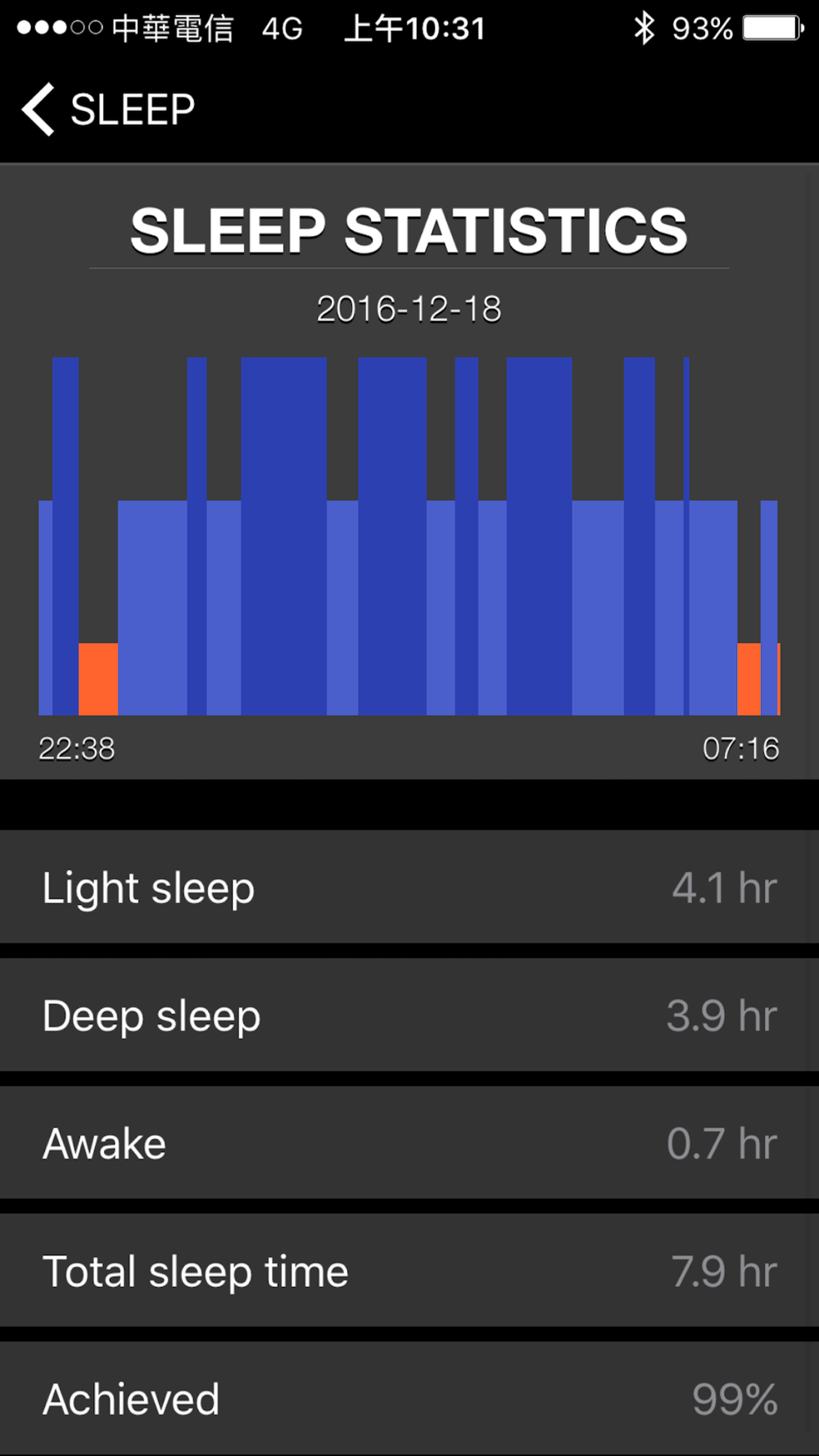 - Sleep: record your total, deep and light sleep hours (B/N model)
