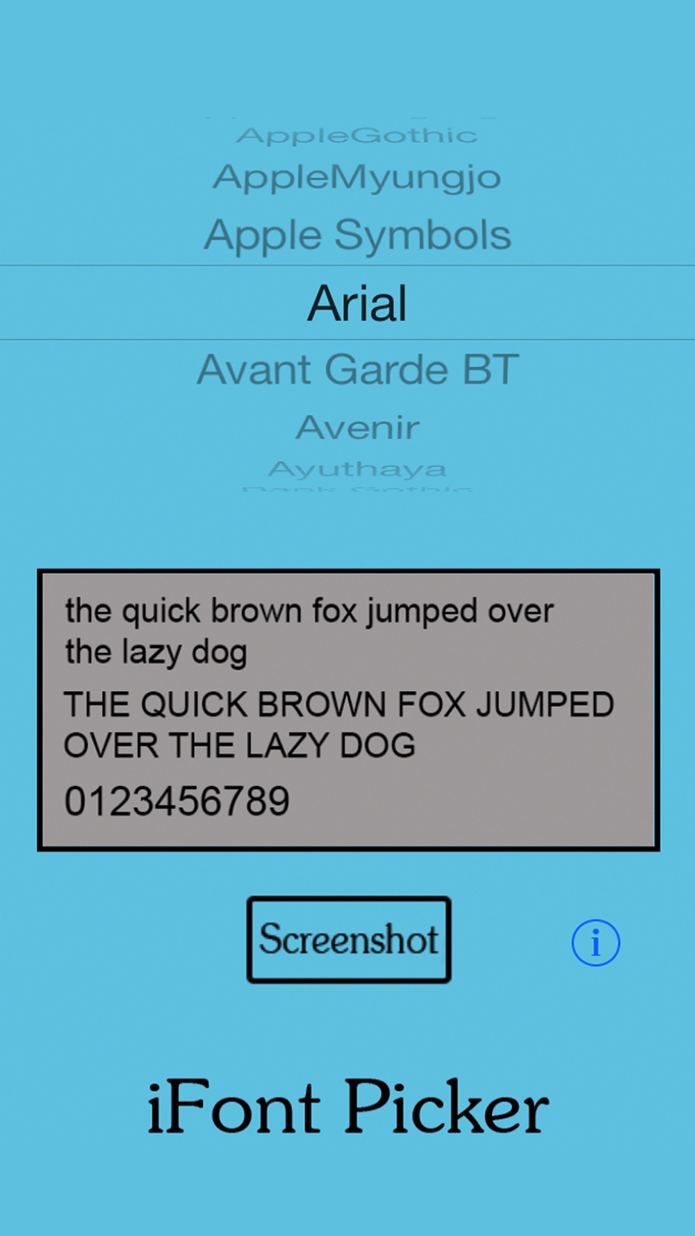 All the standard Mac OSX fonts at your fingertips in a convenient package. Over 200 fonts!! Scroll through the names to see what each font looks like in a sentence. Has a handy button to take a screenshot for future reference or to send to the recipient of your choosing.