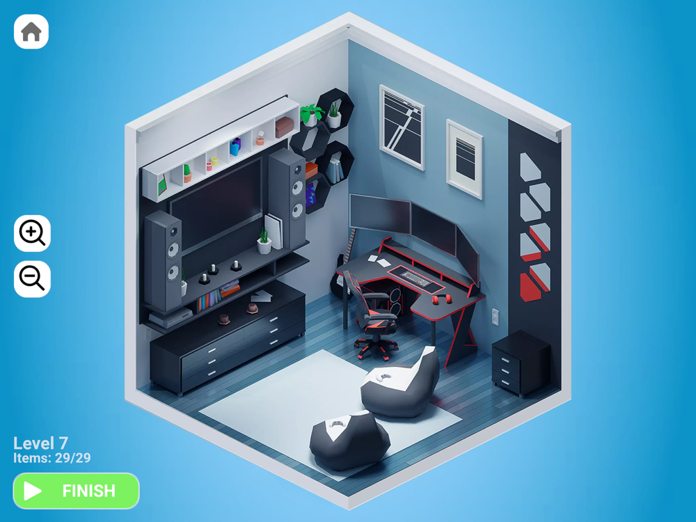 - Levels Mode: Furnish pre-prepared interiors with curated furniture to meet specific design challenges.