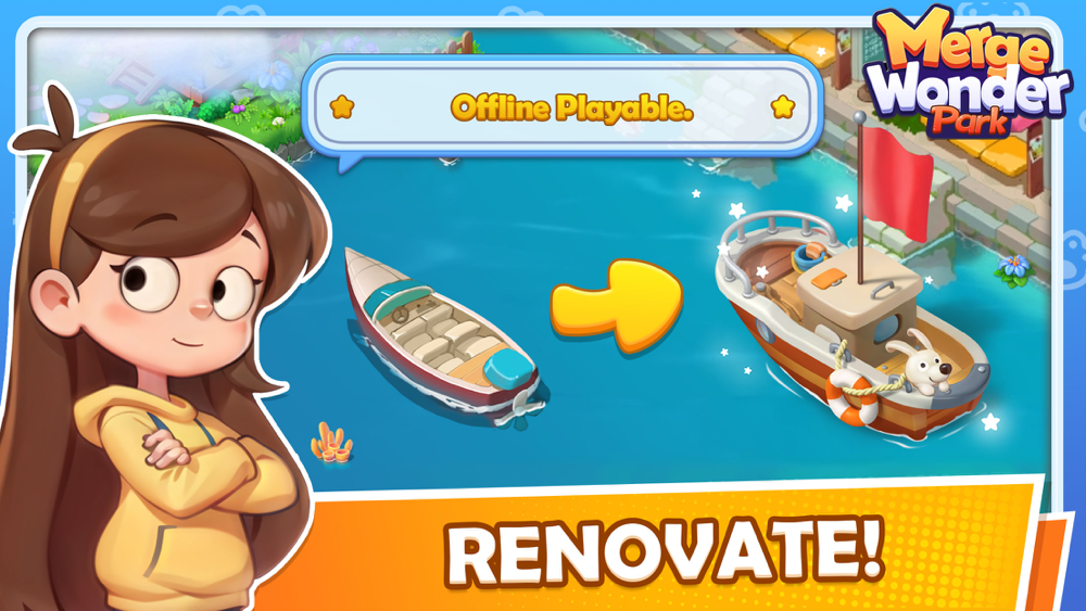 In Merge Wonder Park, you will assist artist Maria in rediscovering her lost inspiration. Feeling frustrated with creative block and life's struggles, Maria decides to visit a coastal resort town to seek new inspiration. She aims to rekindle her artistic passion by building uniquely styled villas in this fresh, inspiring environment.