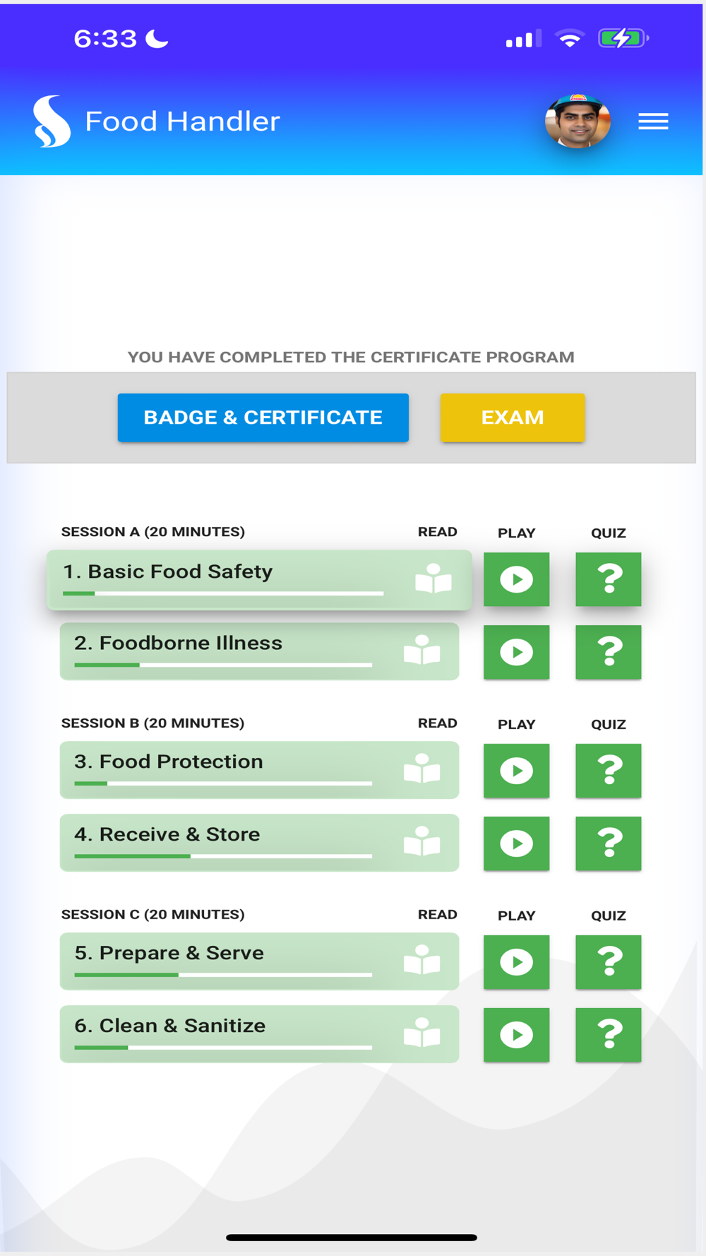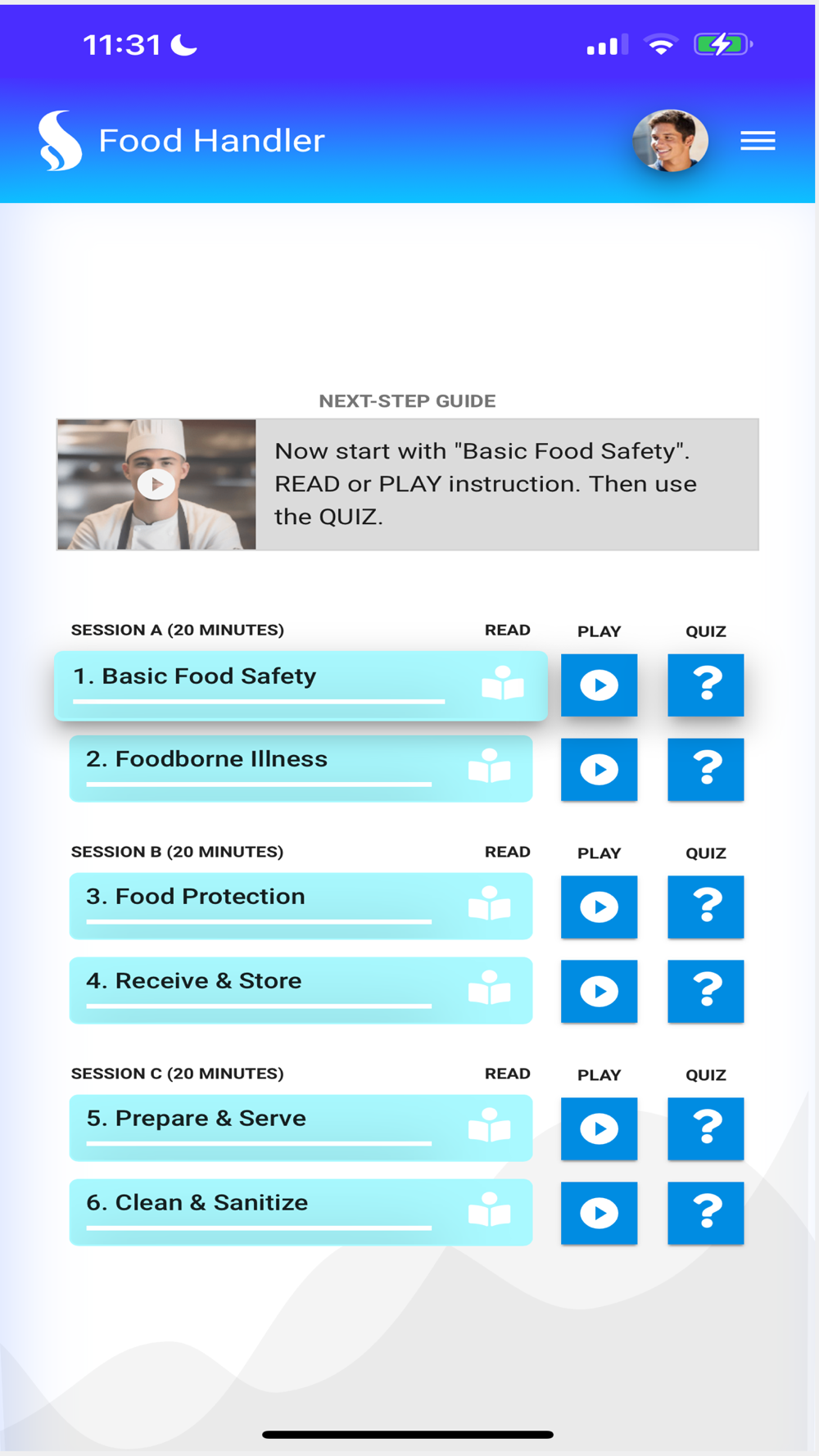 At the end of the program you will be able to demonstrate FOOD HANDLER knowledge and skill in these topical areas.