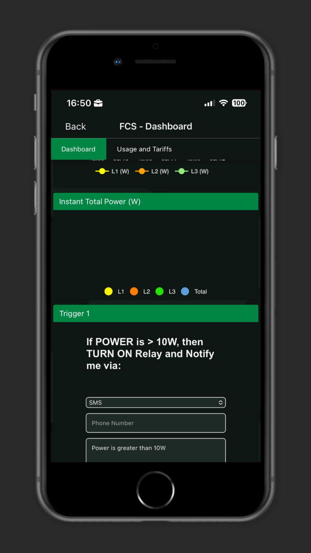 * Example: If voltage exceeds 240Vac, automatically switch off the Power and notify the user.