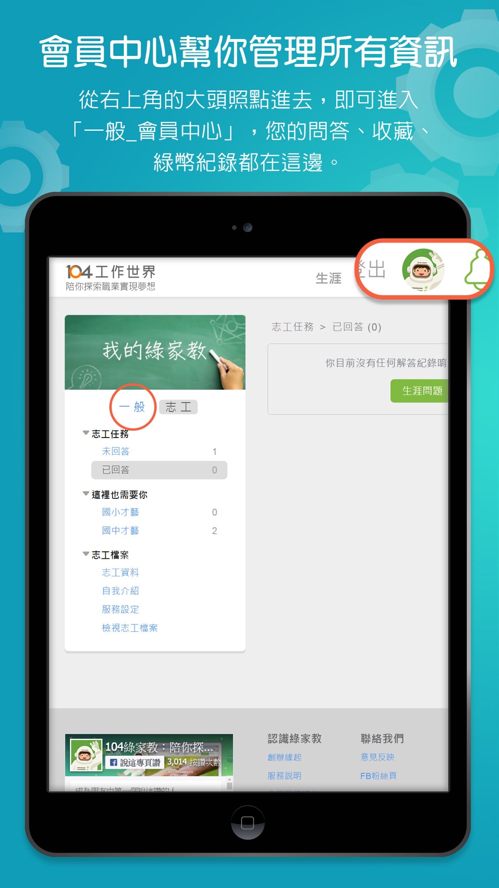 104工作世界是一個提供學生探索真實工作世界的公益平台。我們運用104人力銀行大數據運算和號召各行業志工,讓學生探索貼近真實工作世界的的職業資訊,並找到相關的行業志工進行提問,釐清職業與學習問題。