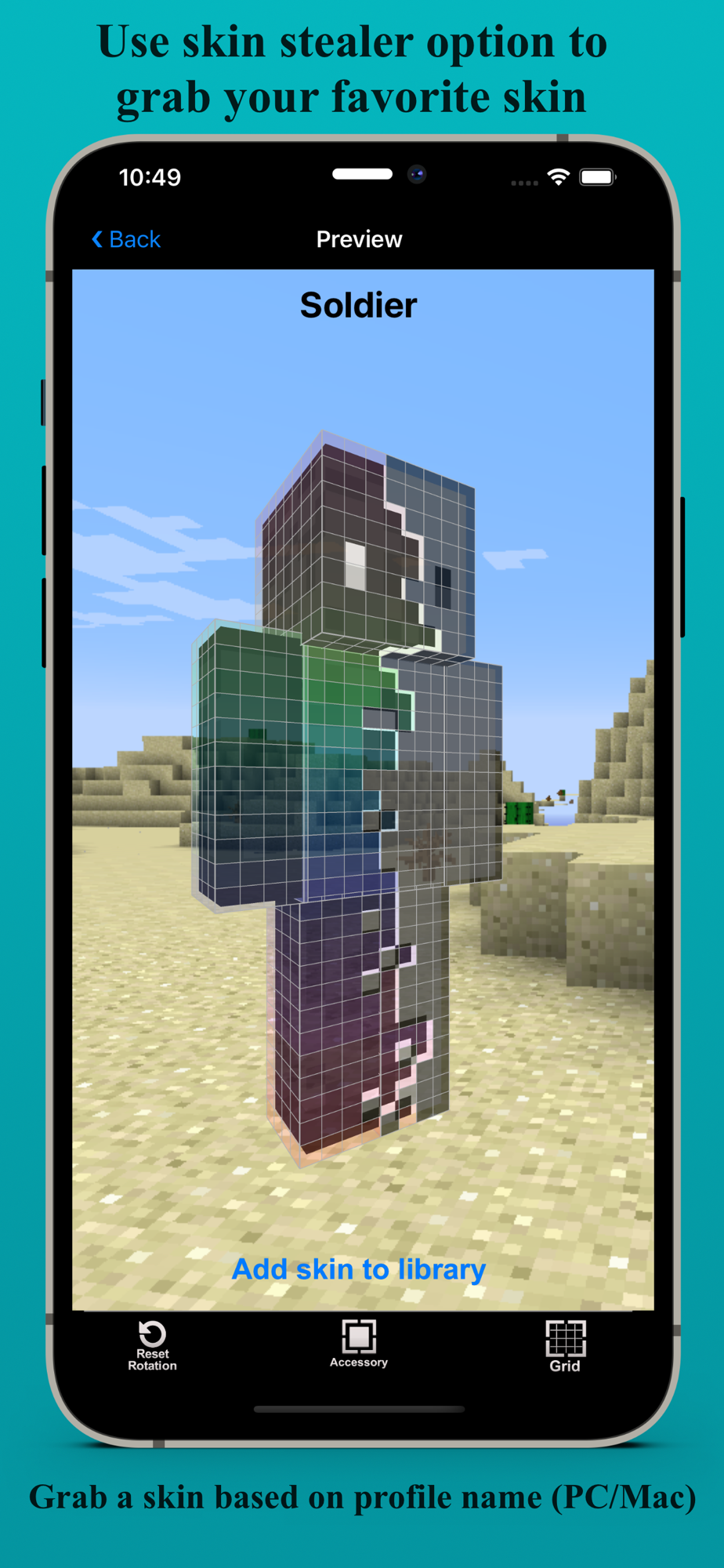 Unleash your imagination and build your skins with ease. With your imagination and Skin Designer 3D, your skins will standout above all others. No ads, no limitations and an unlimited number of save slots for your imagination.