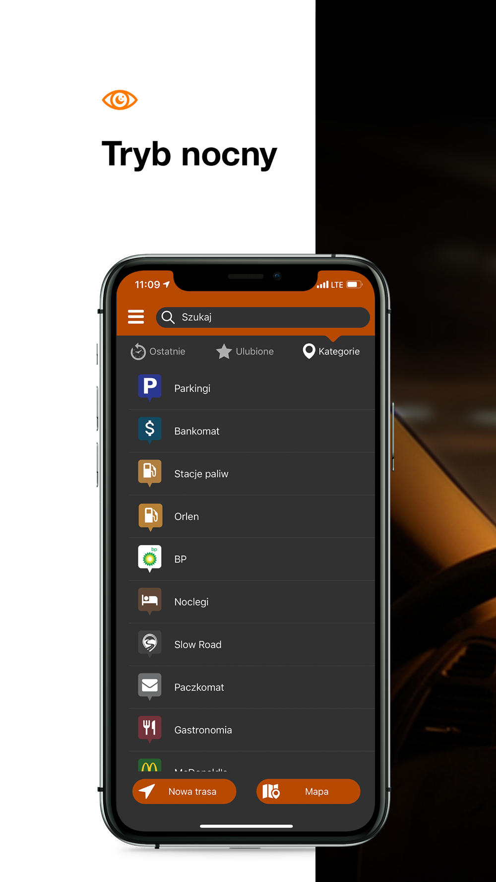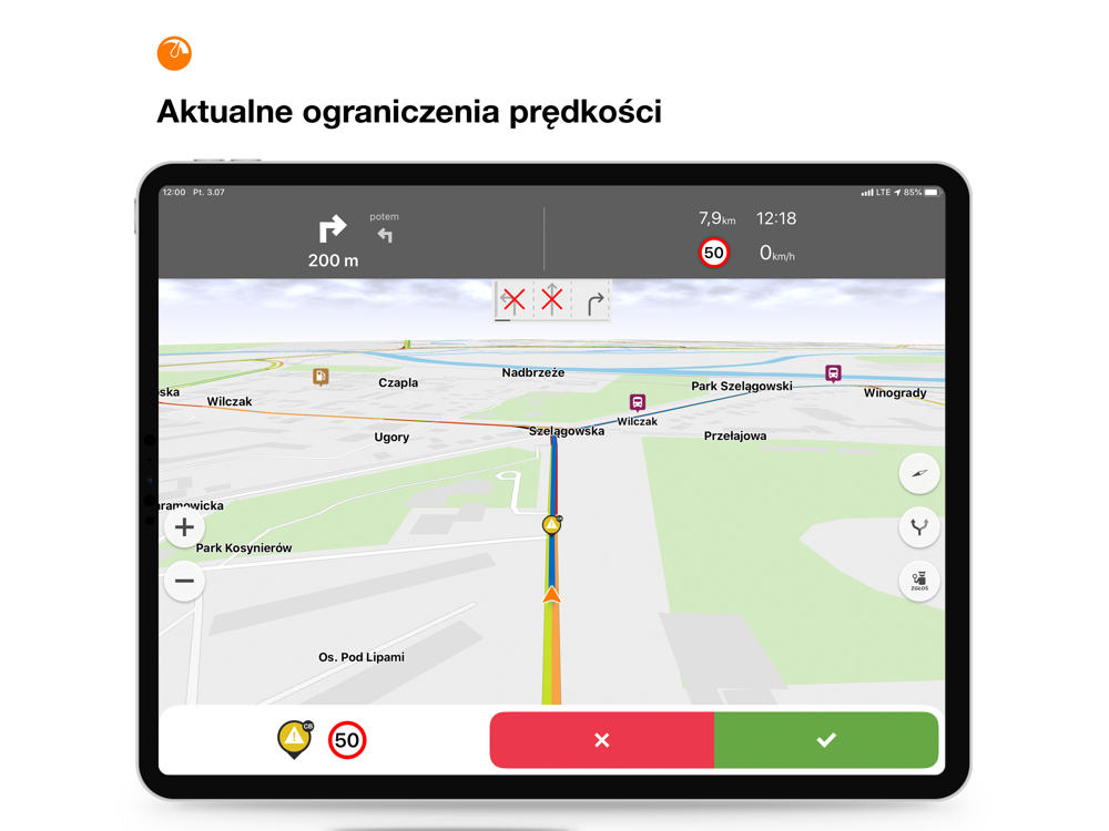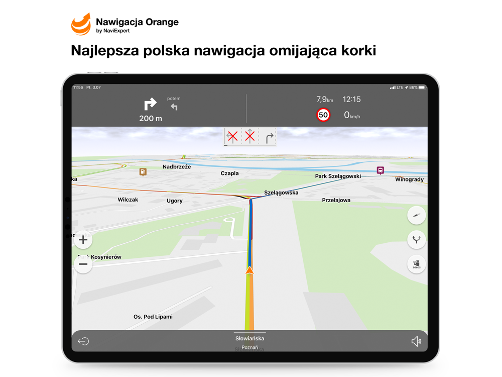 Nawigacja Orange to niezastąpione wsparcie podczas podróży! To drogowy asystent kierowcy, z którym omijasz korki oraz podróżujesz bezpieczniej. Dzięki zgłoszeniom CB od innych kierowców o sytuacji na drodze oraz alertom po przekroczeniu dozwolonej prędkości wiesz, że na drodze nic, ani nikt Cię nie zaskoczy.