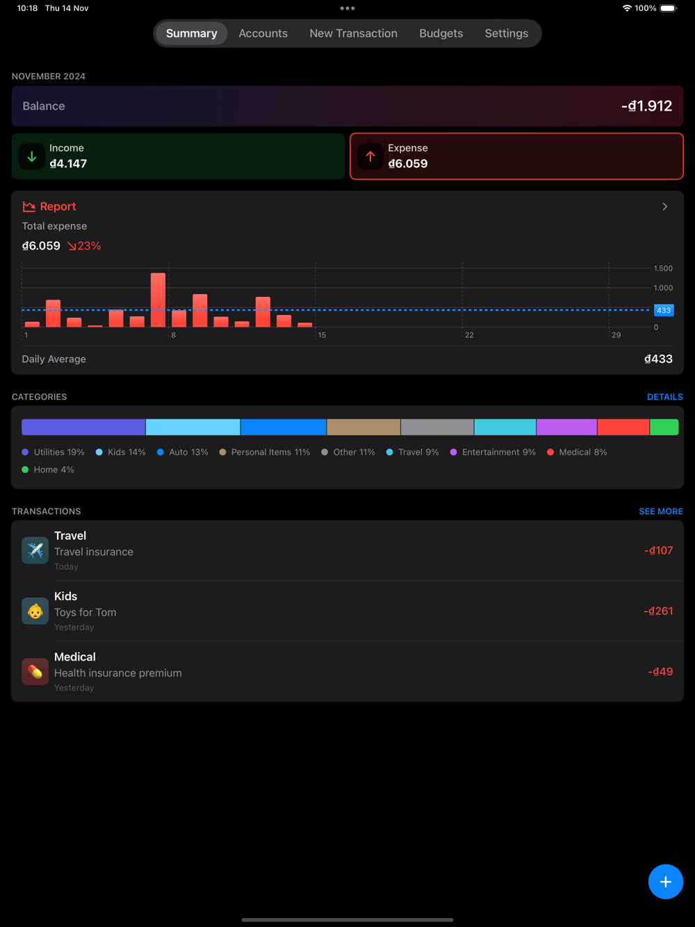• Seguimiento fácil de gastos: Registra rápidamente ingresos y gastos con herramientas intuitivas.