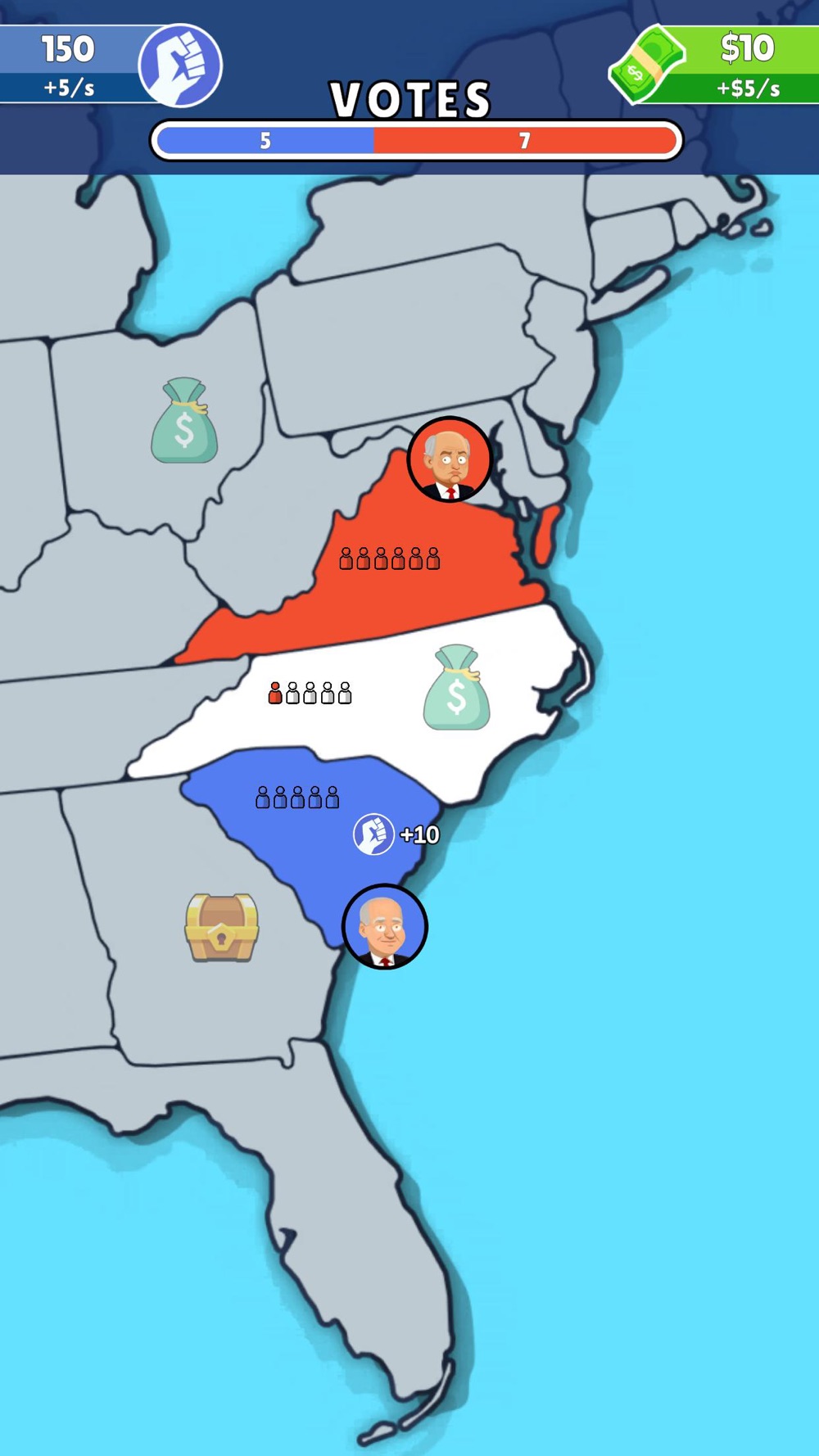 Are you ready to become the next presidential nominee? In this thrilling political strategy game, your path to the highest office in the land is in your hands. Build and maintain good relations with your neighbors to secure their votes, or use your power and wealth to influence their decisions. Every choice you make will impact your campaign, from managing your resources to making critical alliances. Will you rise to power through diplomacy and goodwill, or will you dominate the political landscape with your influence and cunning? The road to the presidency is filled with challenges.