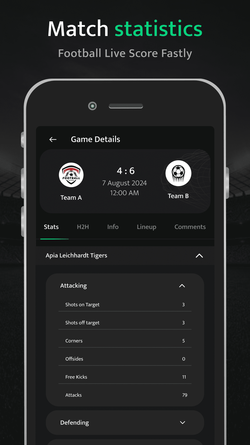 Football live TV Match Scoreboard provides real-time updates on team lineups, scores, match events, live text commentary, statistics, and social media feeds for every game.