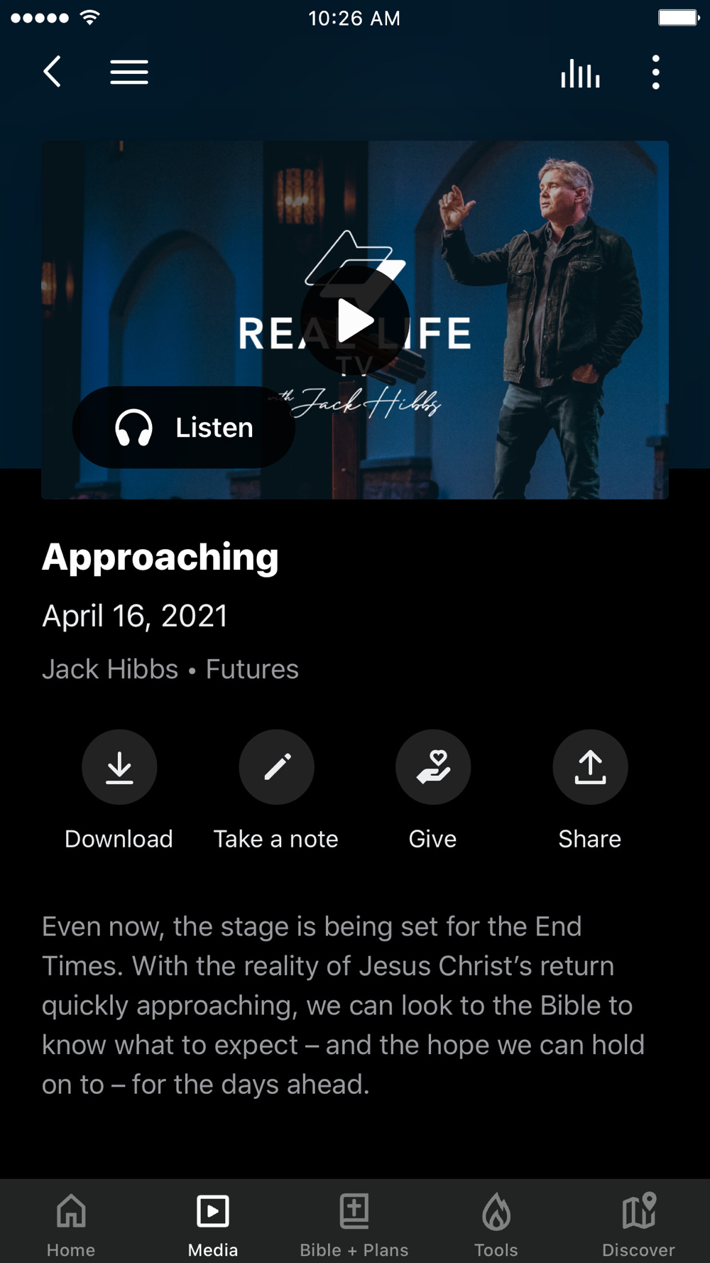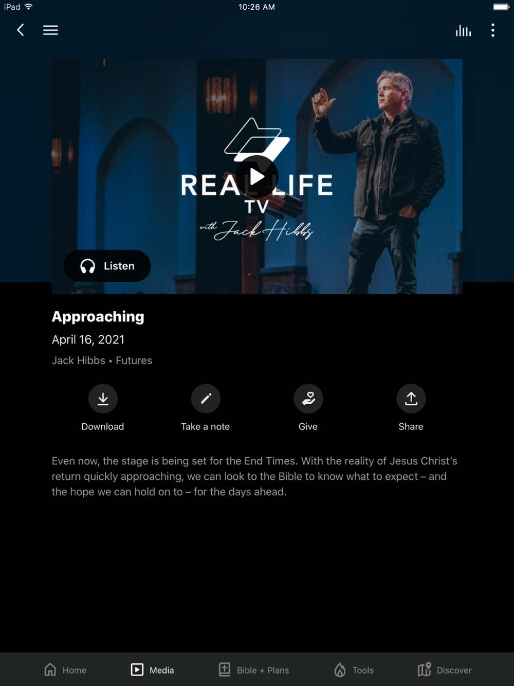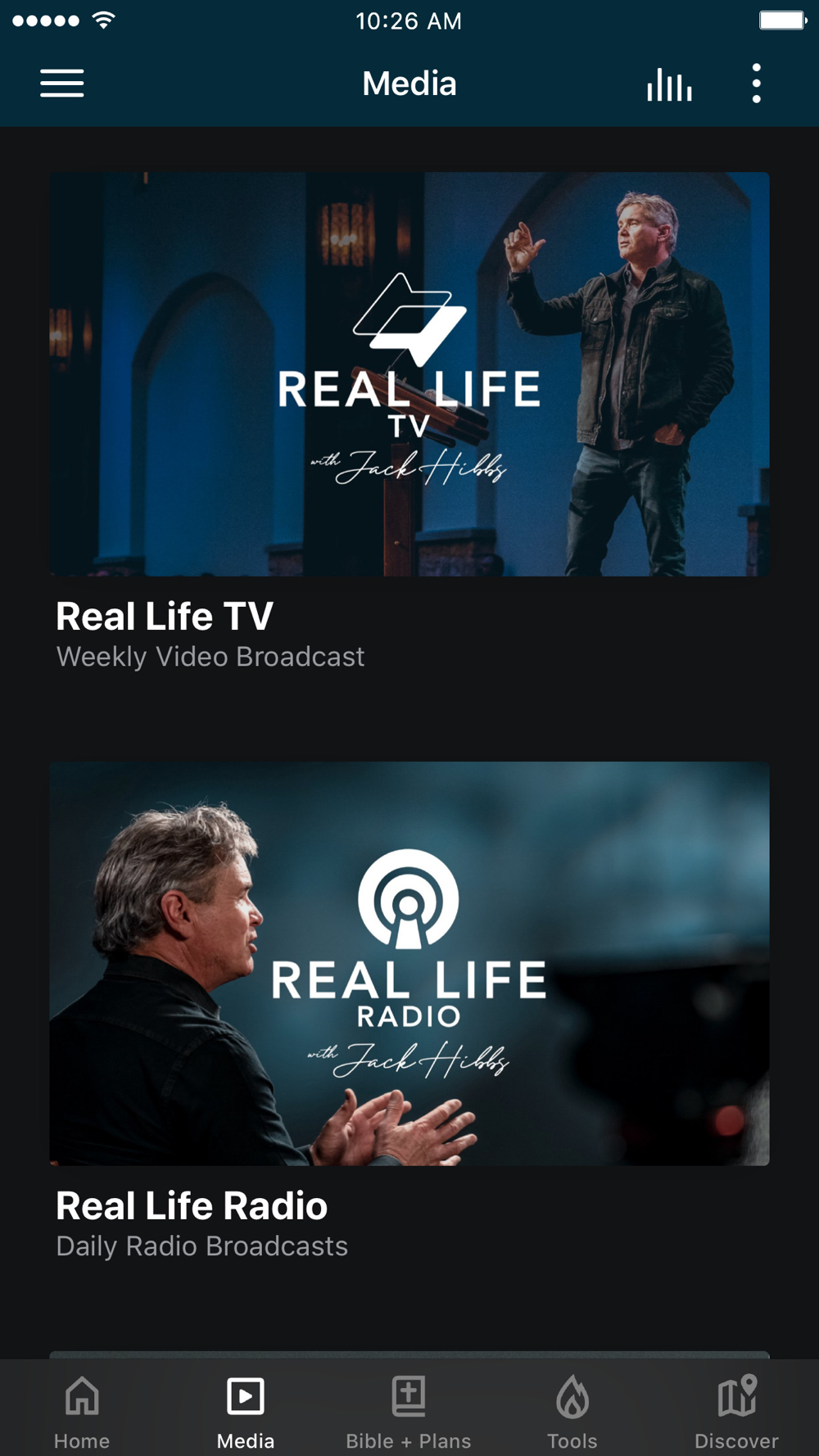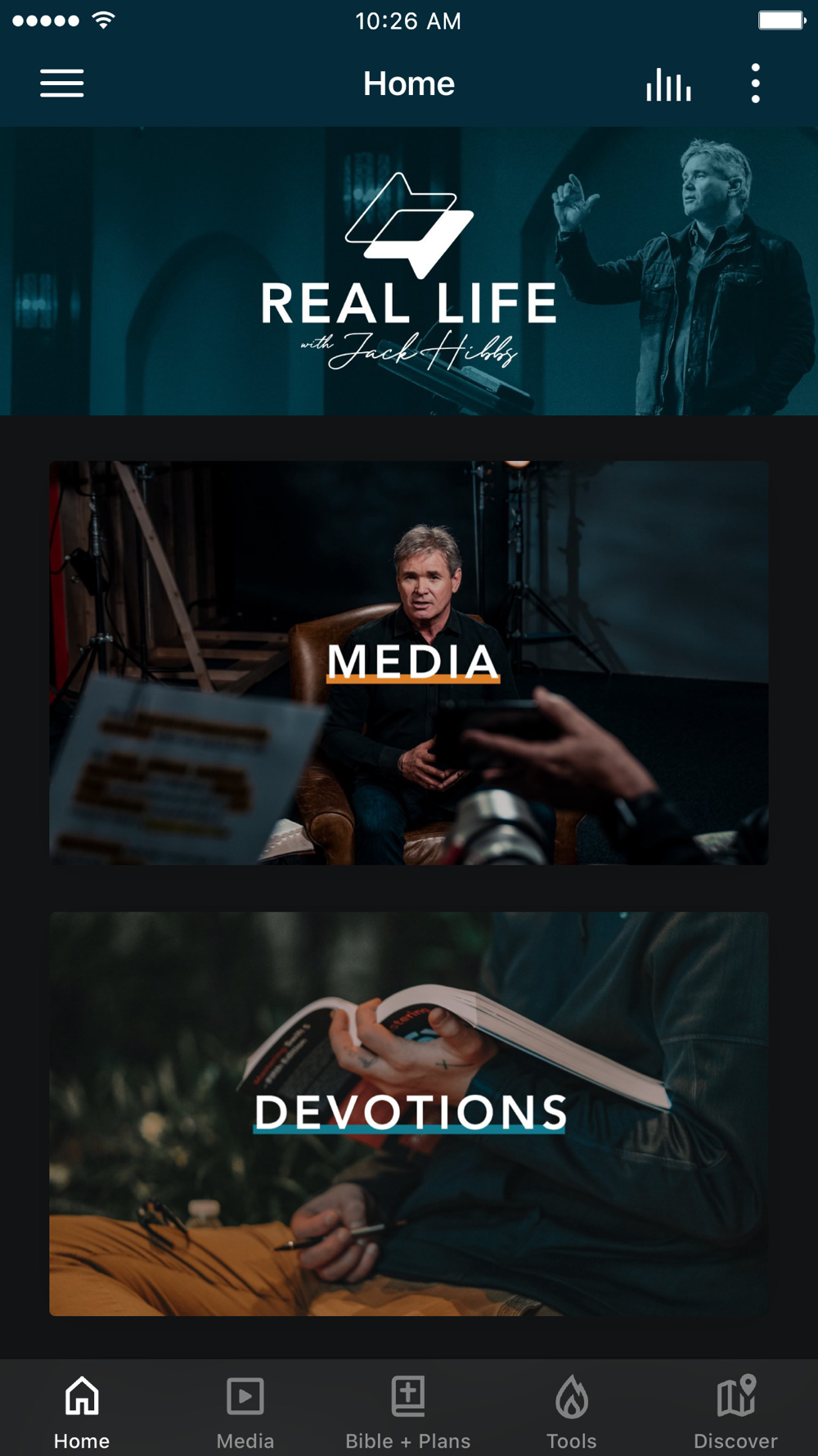 The Real Life app is packed full of features such as: Real Life TV programs, Real Life Radio daily broadcasts, a library of Pastor Jack’s teachings, Jack Hibbs podcasts, weekly devotions, and so much more. Imagine all of this at your fingertips.