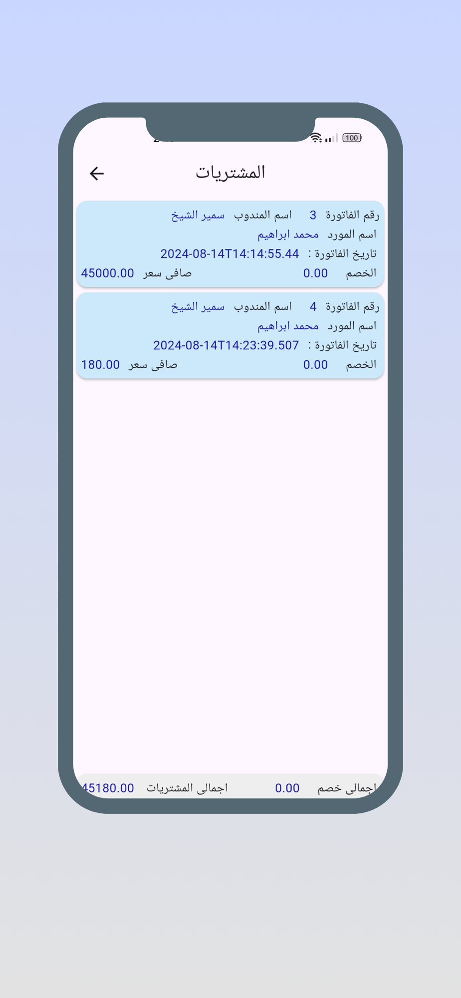 ابليكشن مديرين لادارة فواتير البيع المشتريات الذي يقوم بها المناديب معرفة مديونية عميل من العملاء و يمكنه ايضا معرفة مبلغ تحصيل المندوب من التجار و معرفة كشف حساب عميل و كشف حساب مورد لعميل معين
