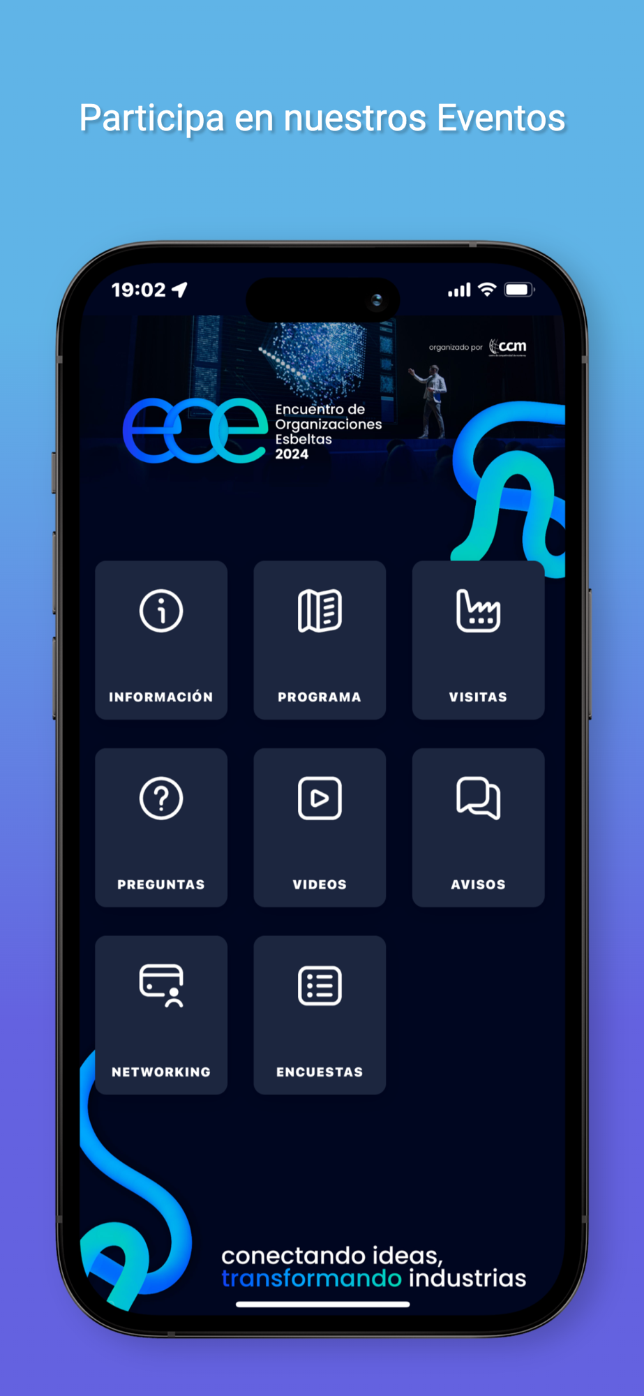Con la app EOE Evento, tendrás acceso a todo lo necesario para disfrutar al máximo del Encuentro de Organizaciones Esbeltas. Personaliza tu agenda, participa en tiempo real, conecta con otros asistentes, y accede al evento con tu identificador digital.