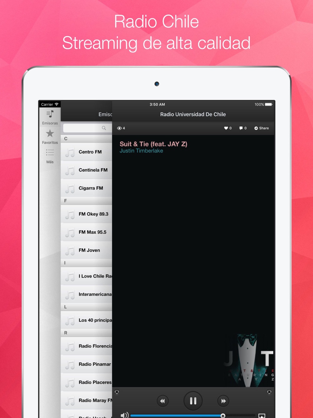 Radio Chile PRO para iPhone/iPad te permite escuchar tus emisoras de radio favoritas de Chile.