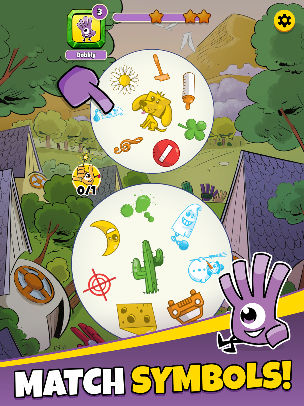 Play SPOT IT! in a whole new way as you join Dobbly on a wild adventure. Match the symbols on the cards to win. The faster you match the more stars you earn as you progress through the map to take on the boss battles.