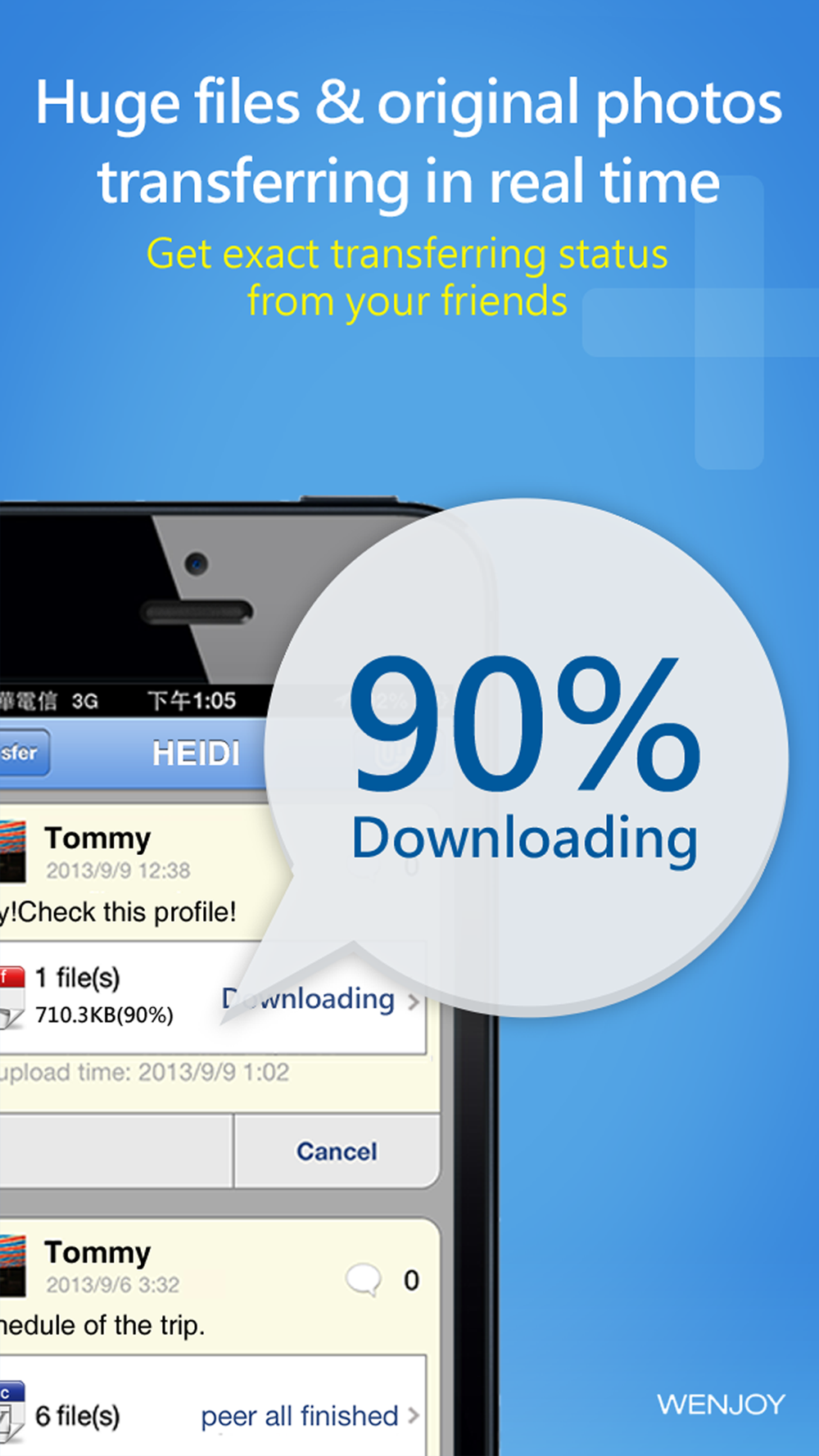 • Receiving files, sending messages and WiFi transfers are totally free. A complimentary capacity of 30MB file sending quota for trial usage.