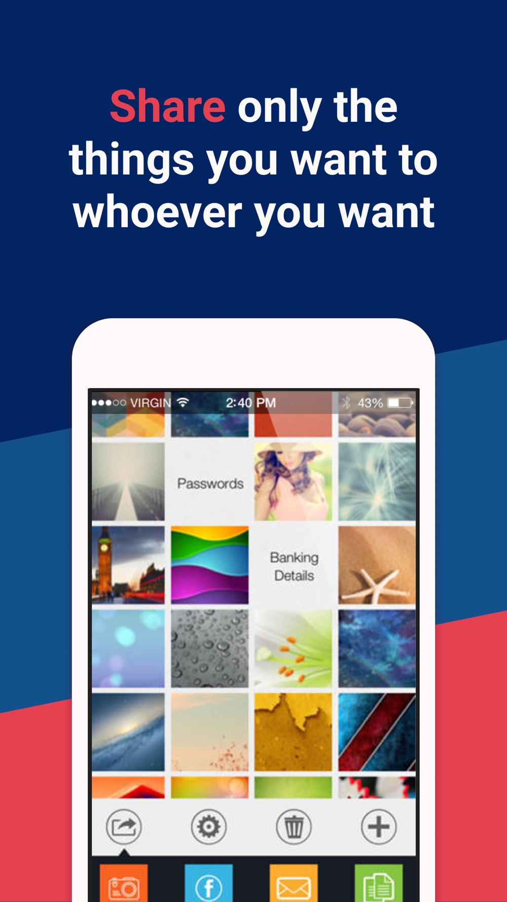 Check out your private things using the viewer within the app. View photos, watch videos and read notes that only you can ever see. If you need to, you can share from within the viewer as well.