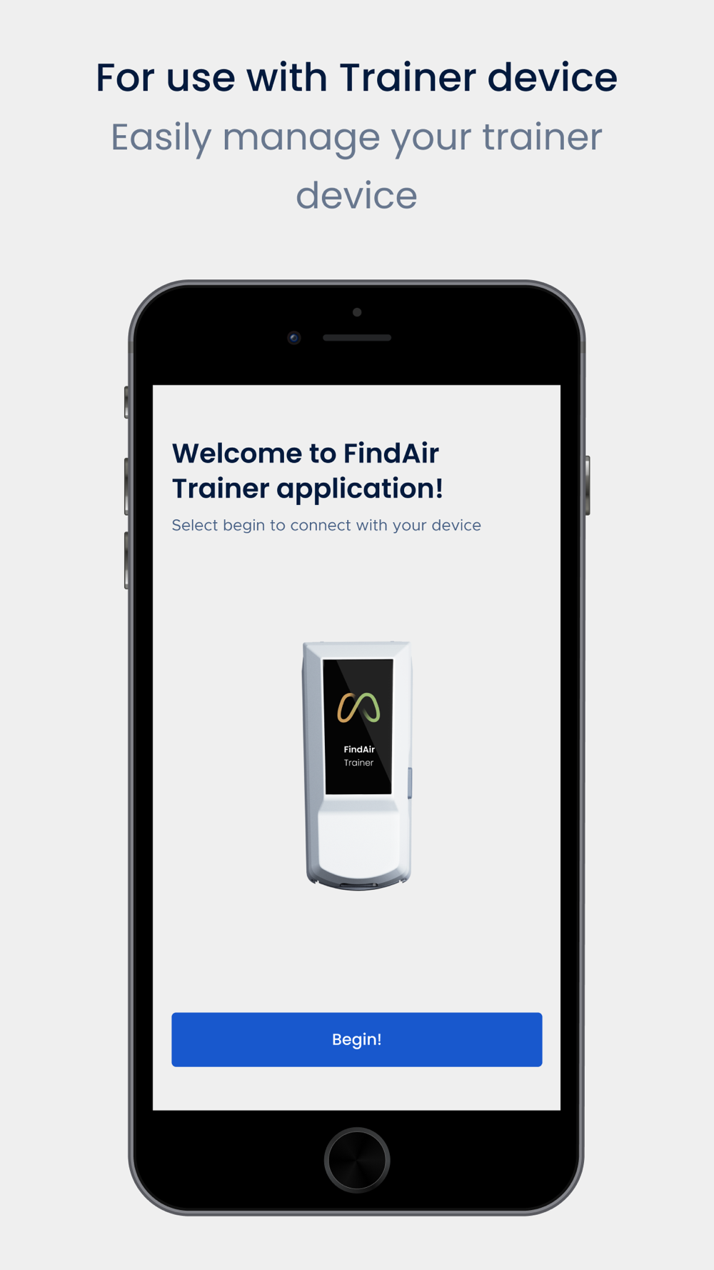 FindAir Trainer is an application that allows for connection with FindAir Trainer device. Connected device may be controlled from the application to enable interactive training and personalisation.