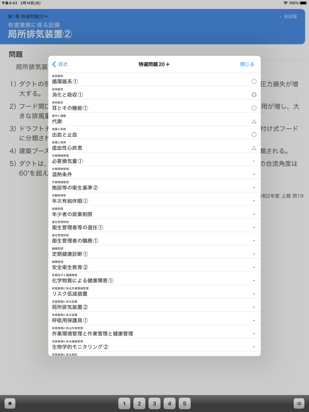 A drill book for 'Eisei kanrisya Examination', a Japanese official certification for Health Supervisor. In this application, you can challenge questions for each essential keyword one by one. After answering each question, you'll see the correct answer and description for the question immediately. So you can progress your study at your own pace.