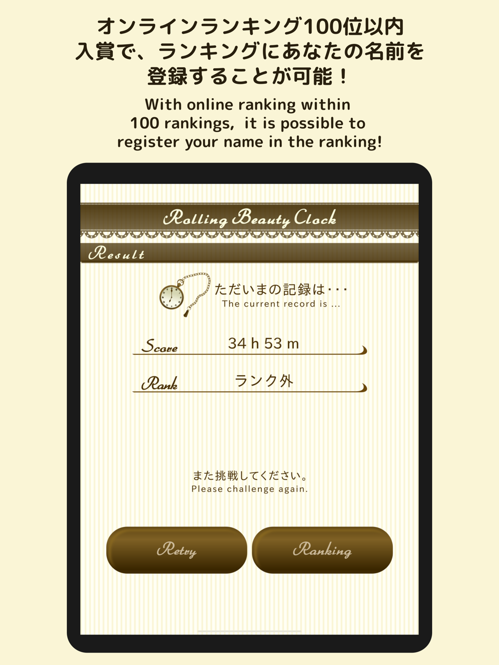 *1 The data registered in the online ranking is the nickname you entered in the registration form, your game result, and the date and time when you registered it.