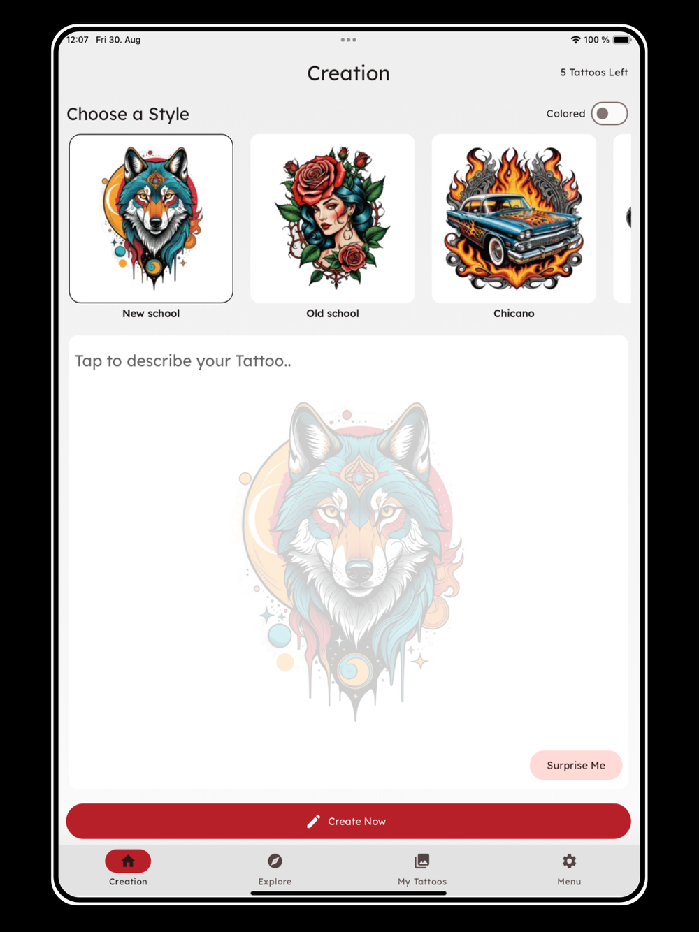 AI Tattoo Designs App: Create one-of-a-kind tattoos effortlessly with our advanced AI, which tailors designs to your style and preferences.