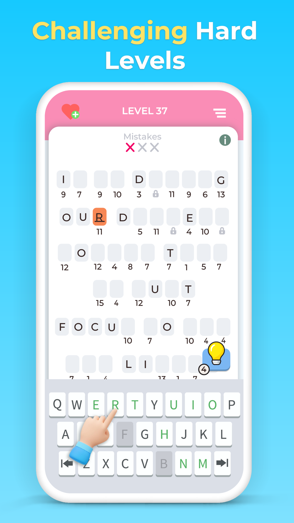 Cryptogram Letters and Numbers offers a timed challenge mode in which players must decrypt the quote within a set time limit. This mode tests players' speed and accuracy, adding an extra layer of excitement and competition. Cryptogram Letters and Numbers is perfect for those who love word games and logic puzzles; get it now to start decoding your favorite quotes.