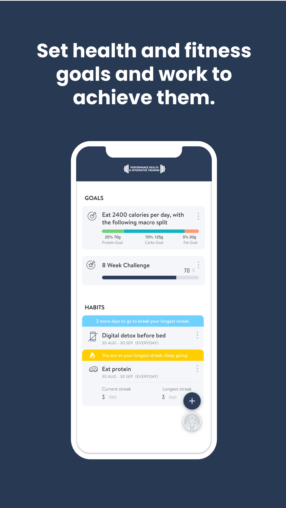 With the PHIT App, you will have access to workout programs designed specifically to help you reach your fitness and health goals! You can follow & track your workouts, your nutrition, your lifestyle habits, measurements and results–all with the help of your coach.