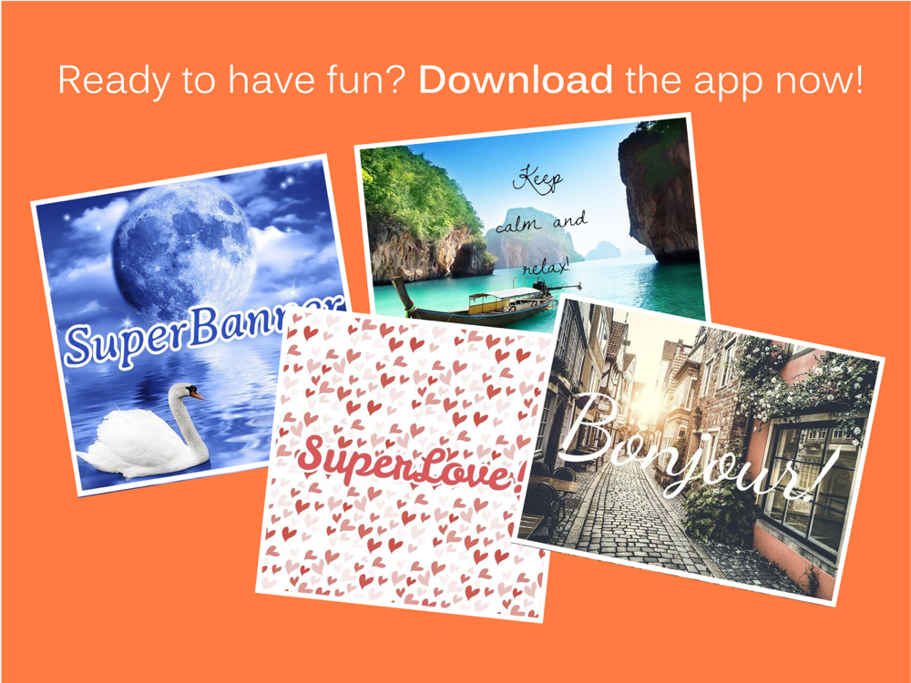 Make beautiful banner messages! Choose among awesome backgrounds and add your message, choosing color & font. You'll love it!