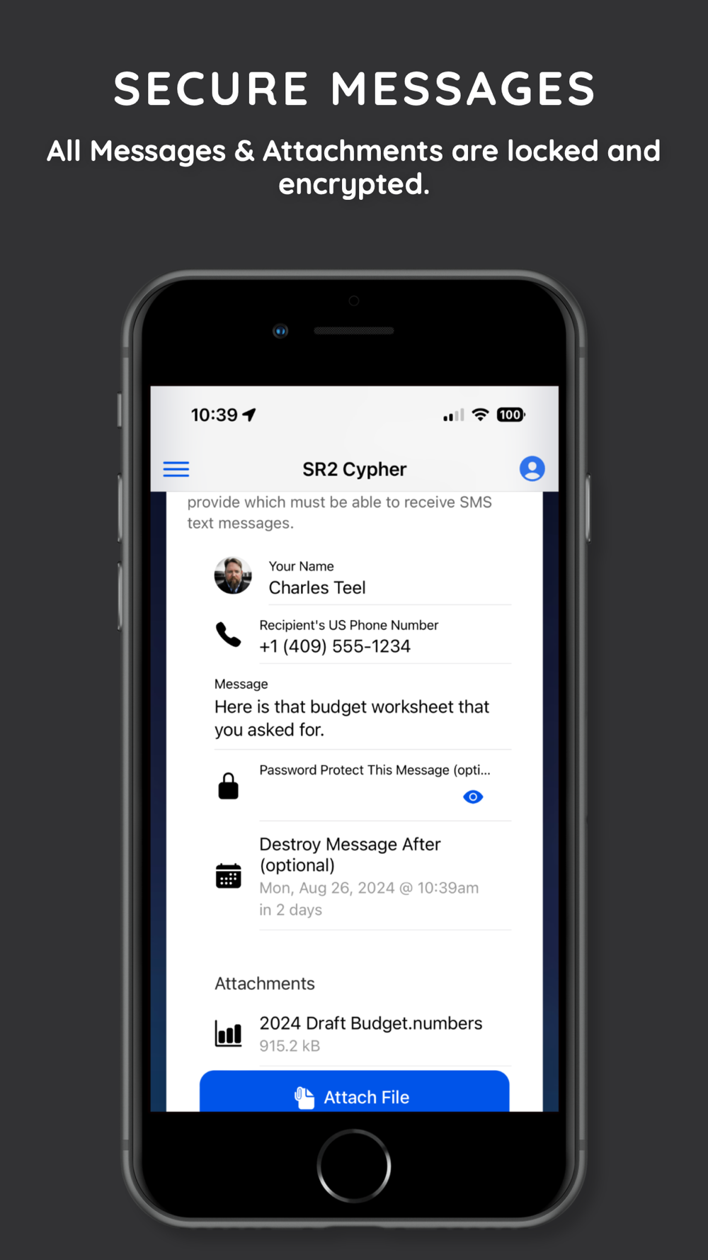 - No App? No Problem: Send secure messages to anyone, even if they don’t have SR2 Cypher installed. Each message is locked to the recipient's device, verified via a one-time passcode sent to their phone.