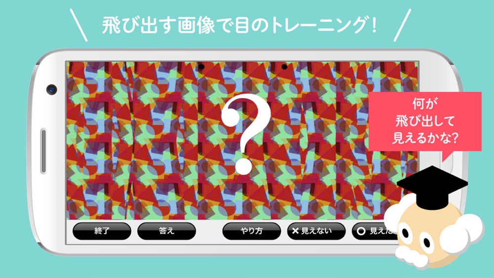 オリジナルの立体視画像(ステレオグラム)を利用した目のトレーニングを行うことが出来ます。「平行法」「交差法」という見方で画像を見ることで普段の生活ではあまり使わない目のピントを合わせる筋力を鍛えることができます。