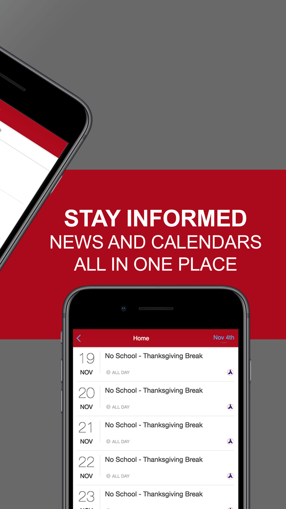 With the Allen ISD mobile app, your school district comes alive with the touch of a button. Easily navigate through current news and events or check out the latest social media updates on Facebook. Quickly retrieve contact information, sporting event scores, lunch menus, and more! It’s your school district available at your fingertips.