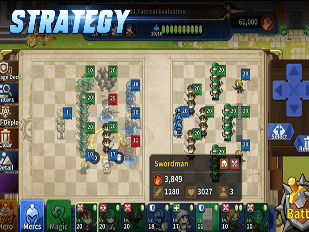 근접 유닛과 원거리 유닛을 적절히 배치하고, 대형을 설계하여 공격을 계획하세요.