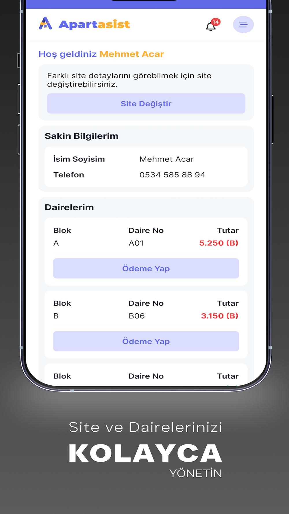 Apartasist Smart ile güncellemelerden artık hemen haberdar olun! Apartasist Smart ile güncellemelerden artık hemen haberdar olun! Apartasist Smart ile oturduğunuz sitenin finansal durumunu artık kolayca takip edebilirsiniz! Yeni Ödeme Entegrasyonu özelliğimiz sayesinde, site aidatlarınızı ve diğer ödemelerinizi hızlı ve zahmetsiz bir şekilde gerçekleştirin. Artık finansal işlemlerinizde tam kontrol sizde!Apartasist Smart ile oturduğunuz sitenin finansal durumunu artık kolayca takip edebilirsiniz! Yeni Ödeme Entegrasyonu özelliğimiz sayesinde, site aidatlarınızı ve diğer ödemelerinizi hızlı ve zahmetsiz bir şekilde gerçekleştirin. Artık finansal işlemlerinizde tam kontrol sizde!