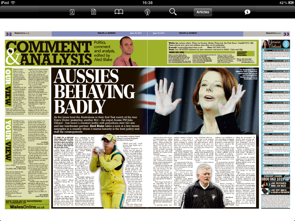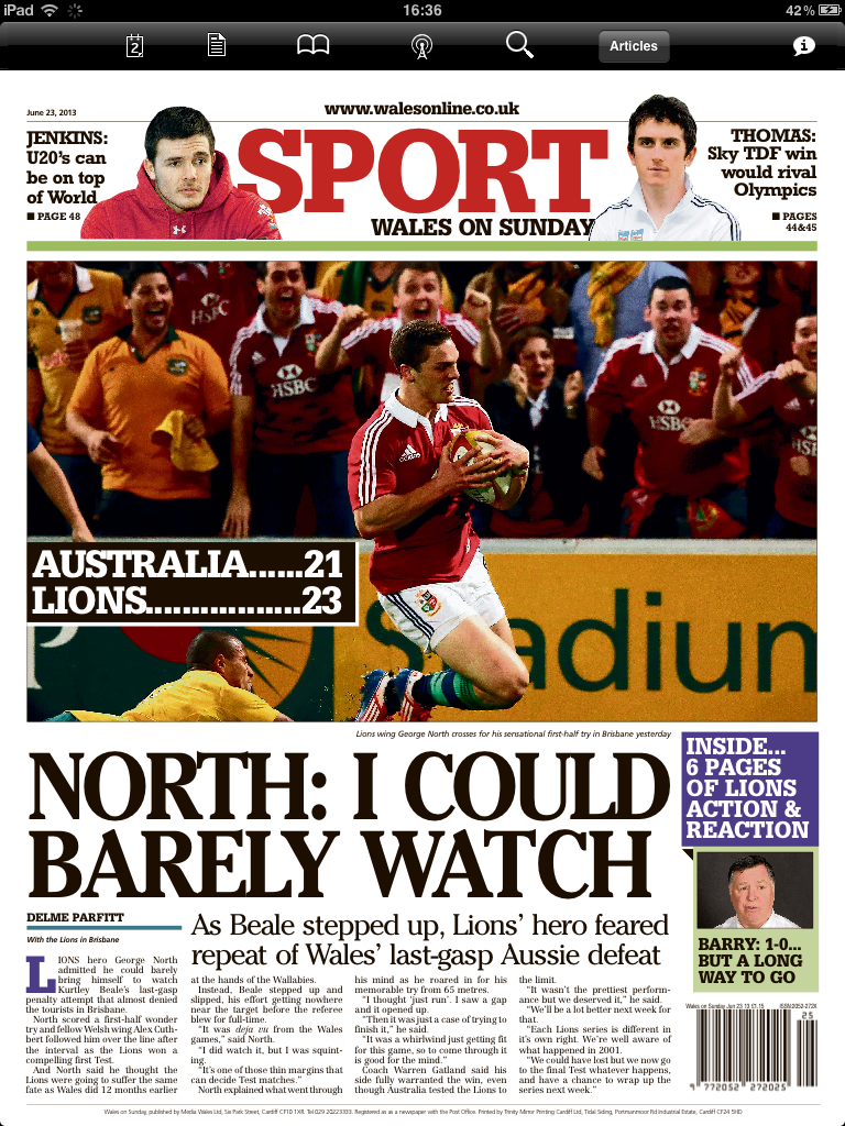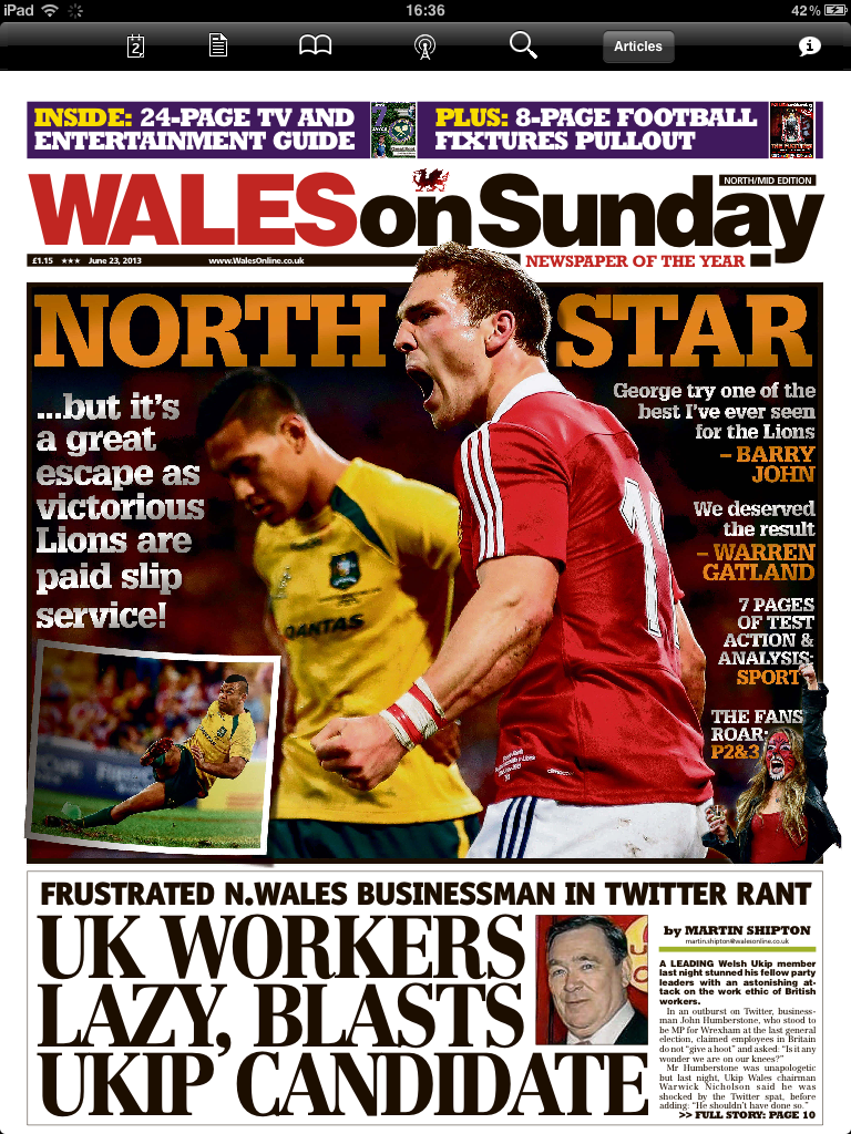 Downloaded weekly to your tablet, the e-edition is a full replica of the printed edition, packed with the news, sport and features that get Wales talking.