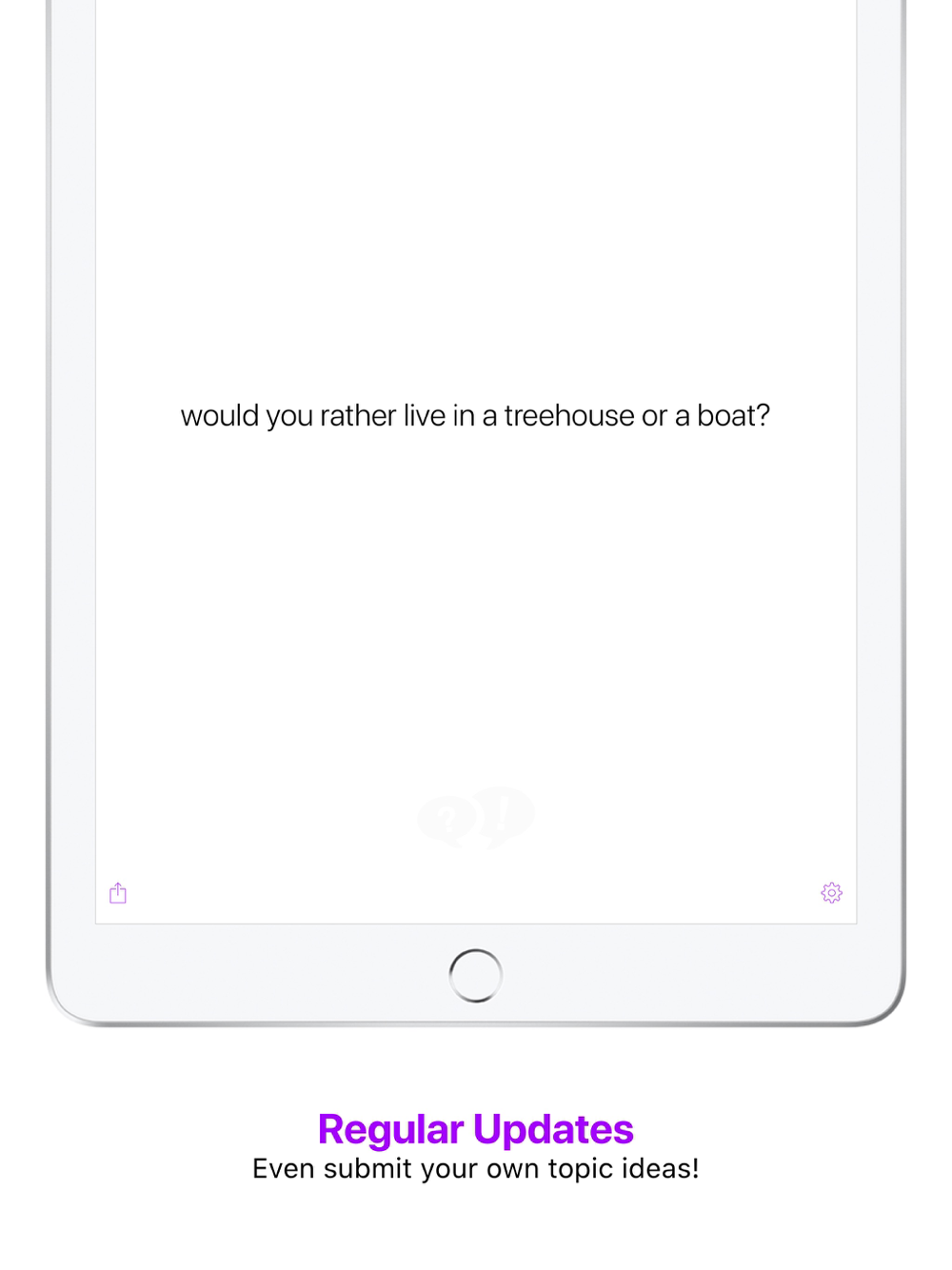 Tap the settings button to select a pack of topics. You can even submit your very own topic!